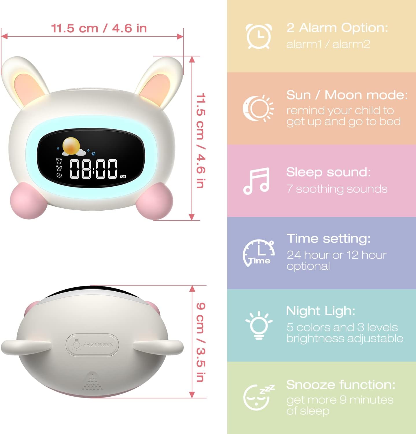 LEMNOI Otroška budilka z nočno svetilko z barvno osvetlitvijo in funkcijo spanja