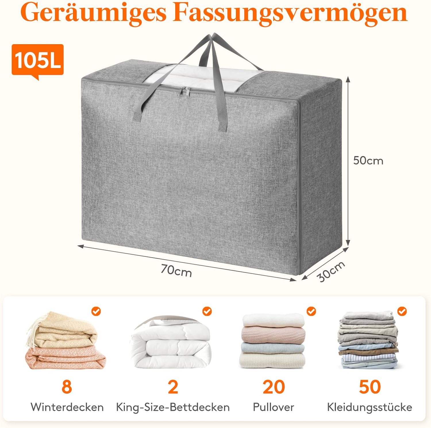 Velika kapaciteta: vsak kos ponuja 105 L prostora za shranjevanje večjih predmetov, kot so odeje, puhasti plašči, posteljnina ali sezonska oblačila.