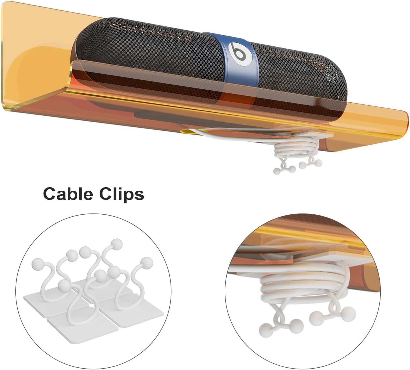 Praktična stenska polica nudi dodaten prostor za dekoracijo, shranjevanje knjig, fotografij ali pametnih naprav, hkrati pa omogoča enostavno upravljanje kablov z okroglim izvrtino in priloženimi sponkami.