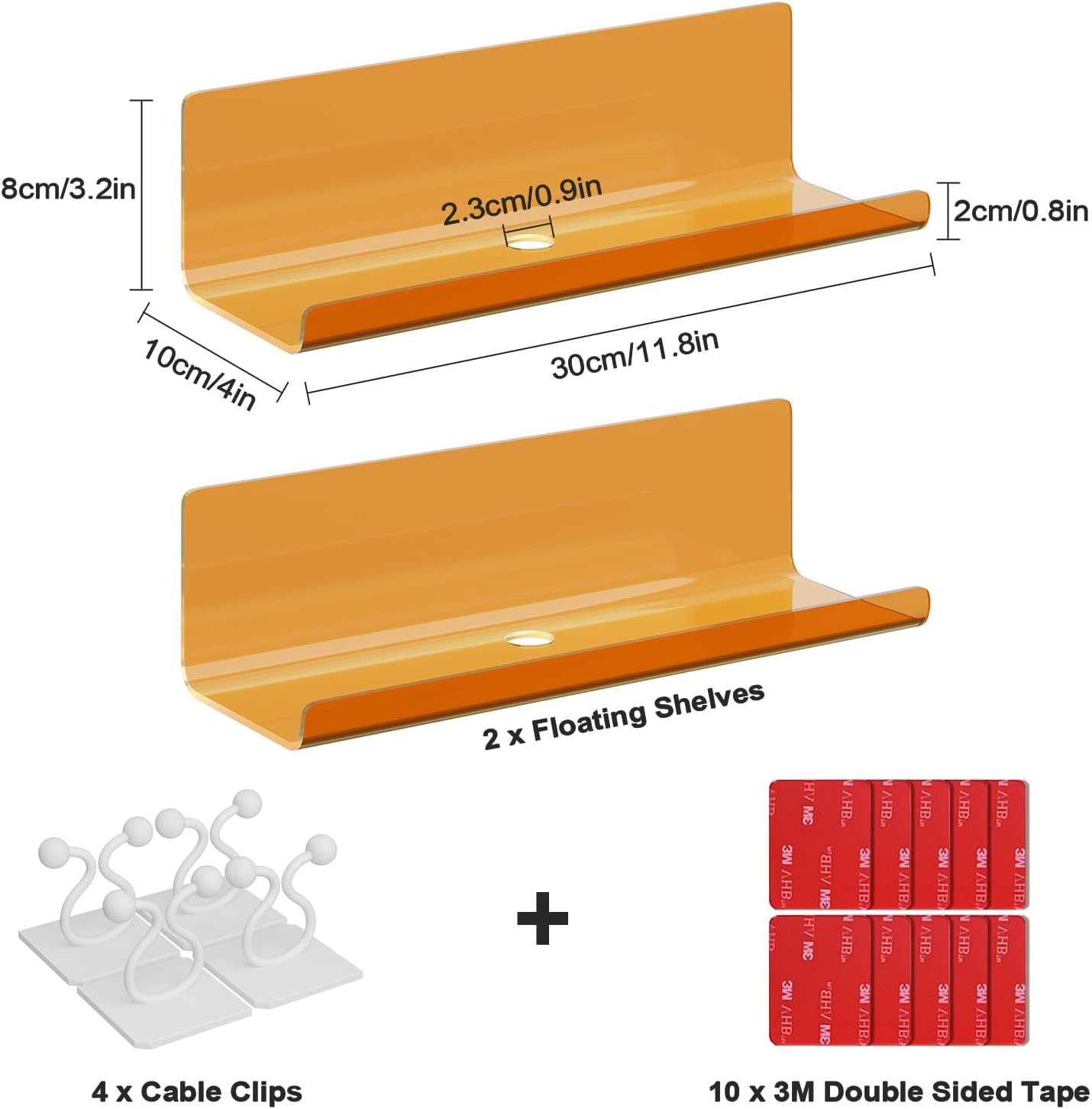 LOFTPLUS akrilna lebdeča stenska polica brez vrtanja - komplet 2 kos