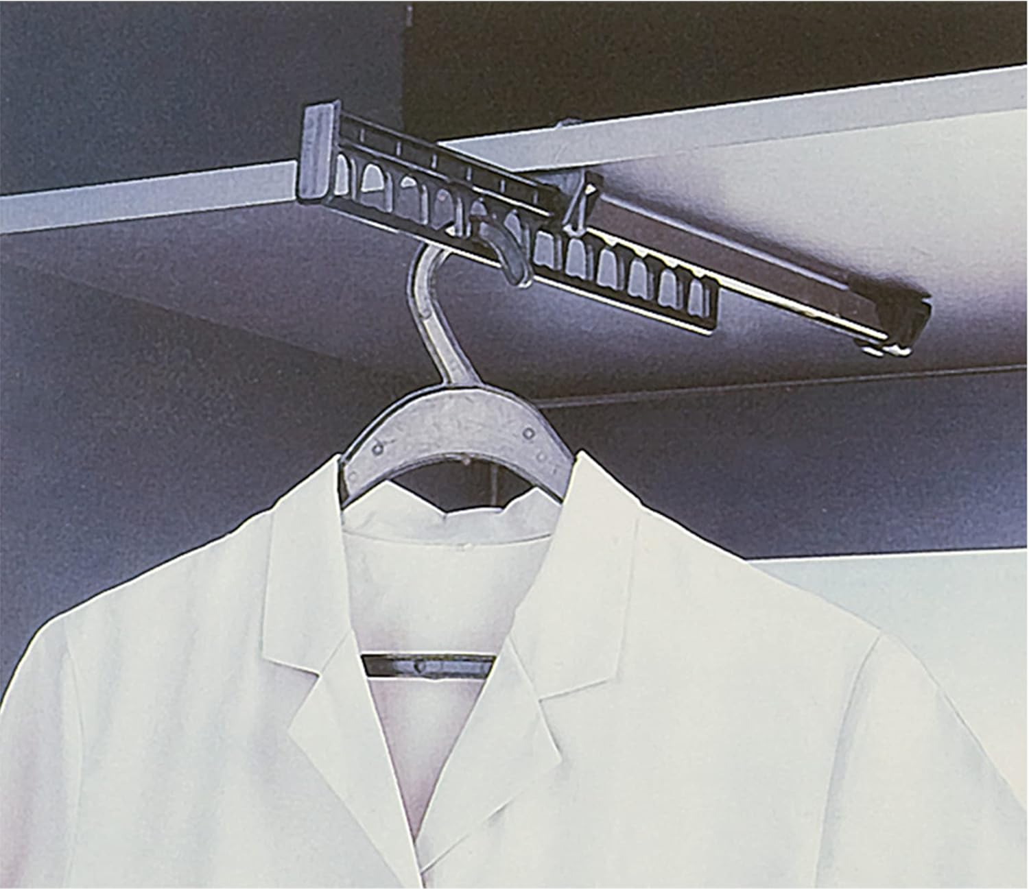 Izvlečna zasnova: omogoča enostaven dostop do obešenih oblačil in se po uporabi zlahka potisne nazaj v omaro.