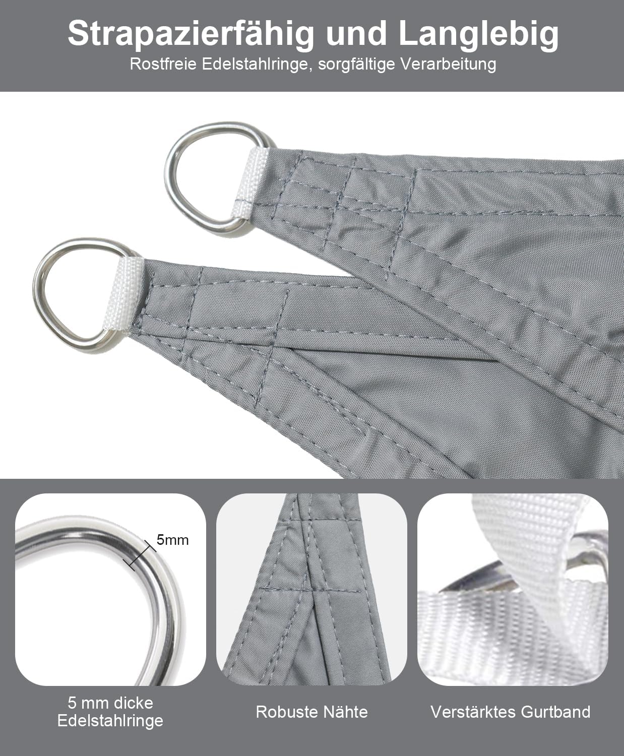 Senčno jadro združuje funkcionalnost, eleganten dizajn in zanesljivo zaščito pred soncem ter rahlim dežjem. Izdelano je iz kakovostnega poliestra z vodoodporno PU-prevleko, ki blokira do 95 % škodljivih UV-žarkov, kar zagotavlja prijetno senco in daljšo življenjsko dobo tkanine.