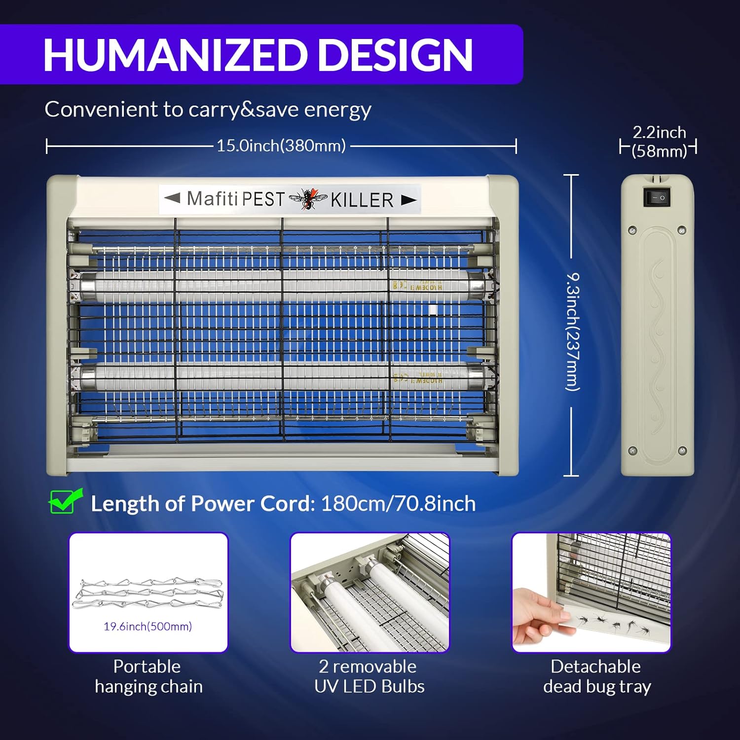 Vsebina paketa: 1 × električni uničevalec insektov, 1 × kovinska veriga za obešanje