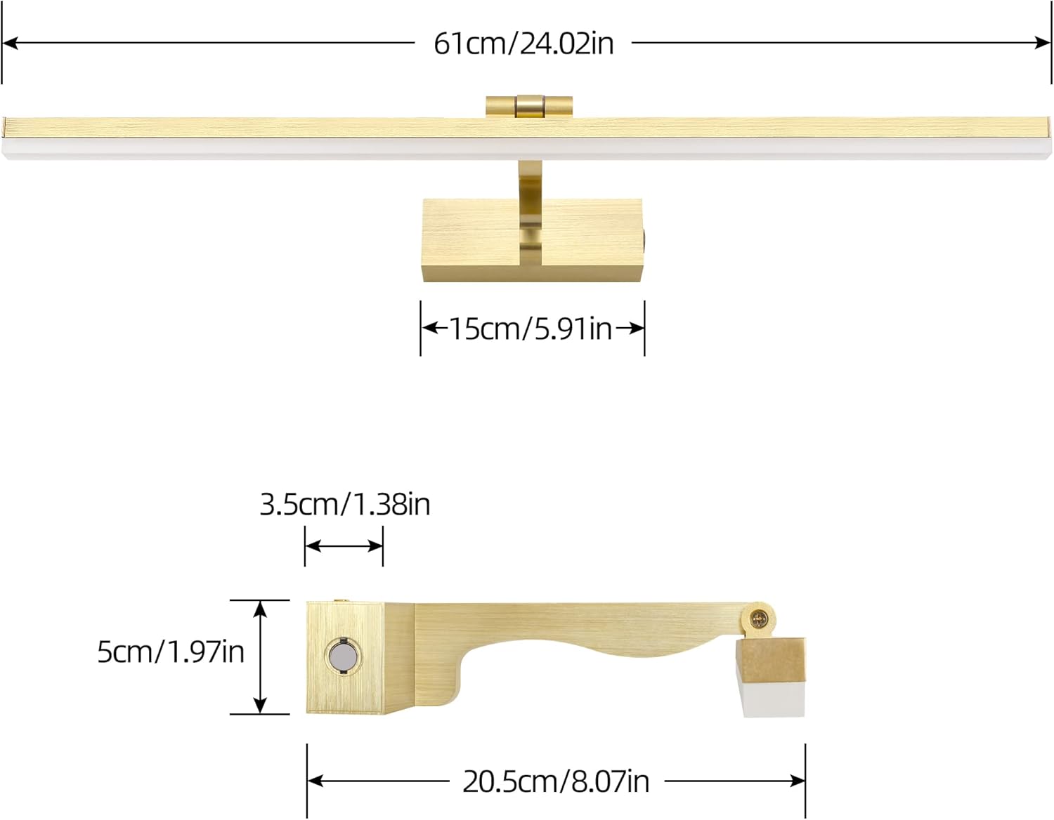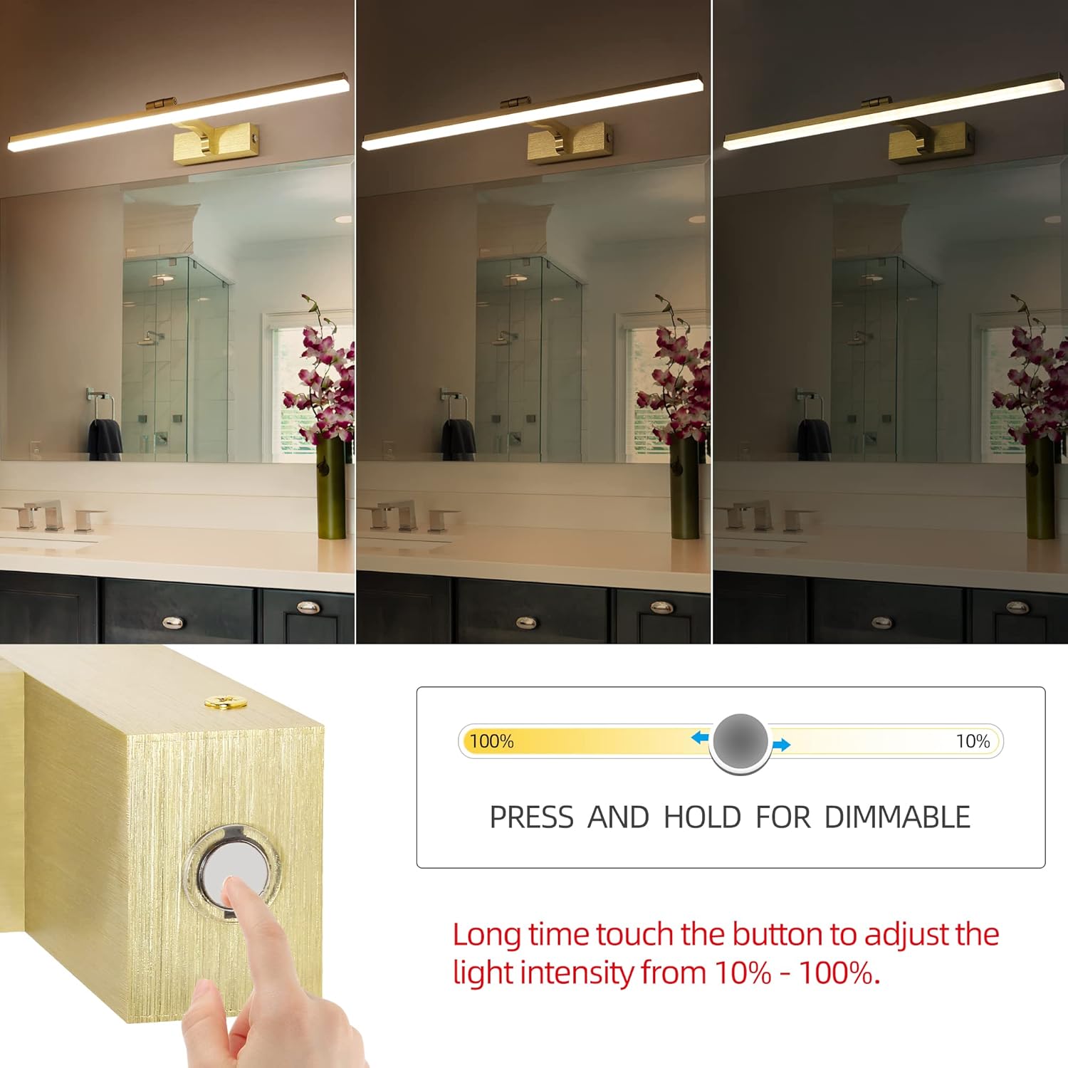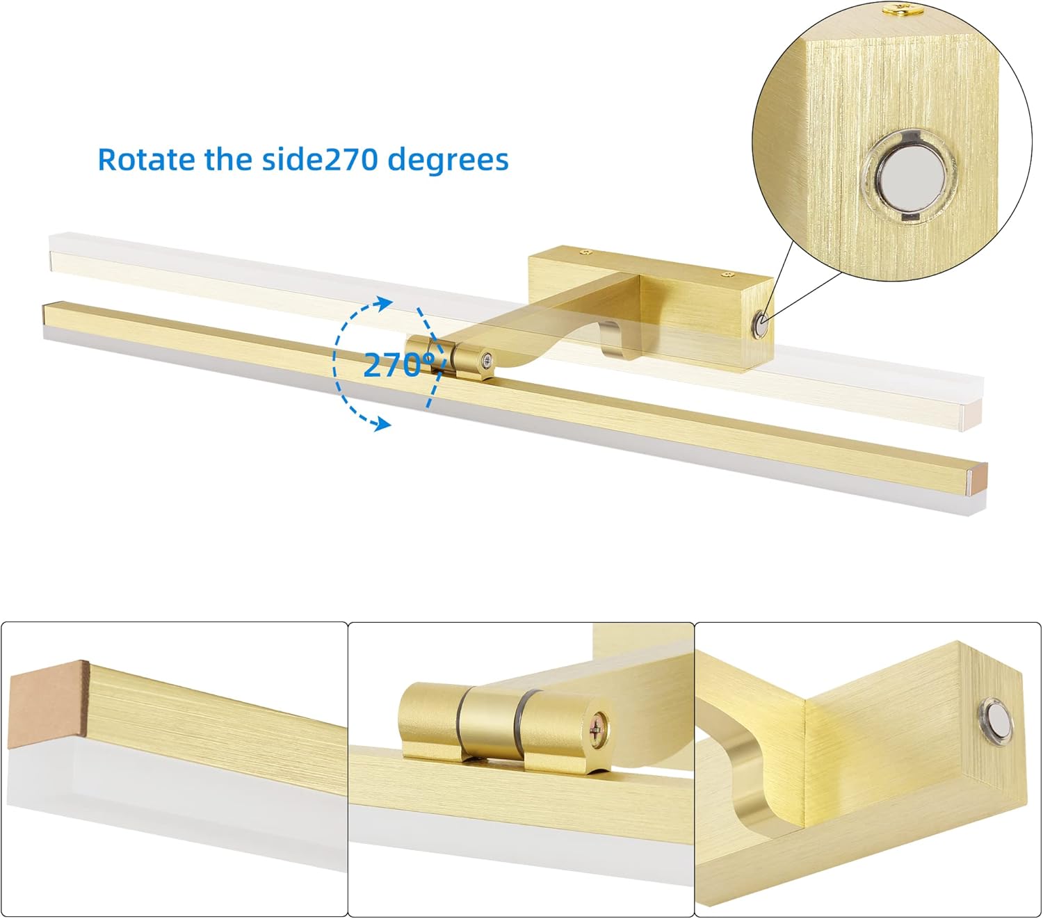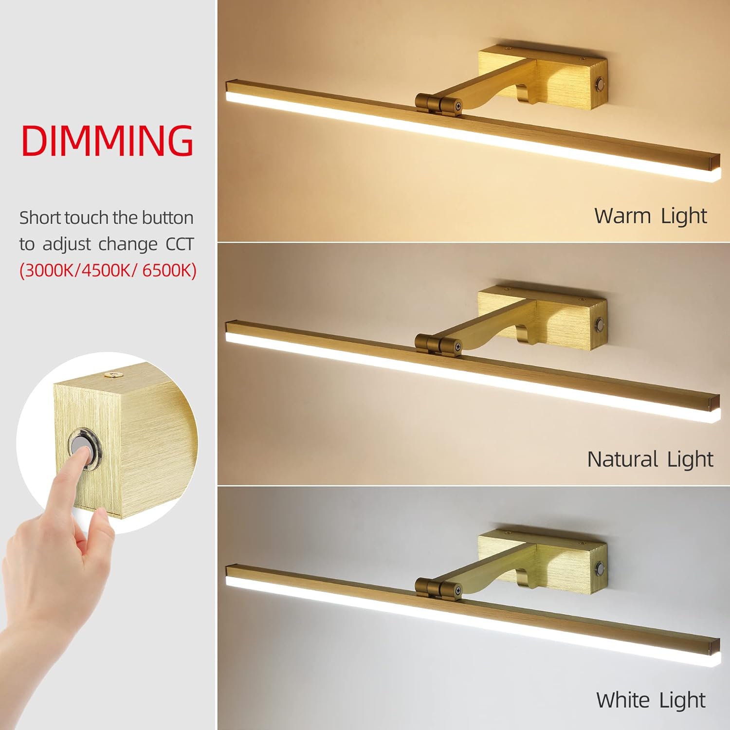 Elegantna LED stenska svetilka v zlati barvi je idealna za kopalnico, spalnico ali dnevni prostor. Z enostavnim upravljanjem na dotik omogoča prilagoditev svetlosti in barvne temperature, medtem ko 270° nastavljiva glava poskrbi za optimalno osvetlitev prostora, ogledala ali umetniških del.