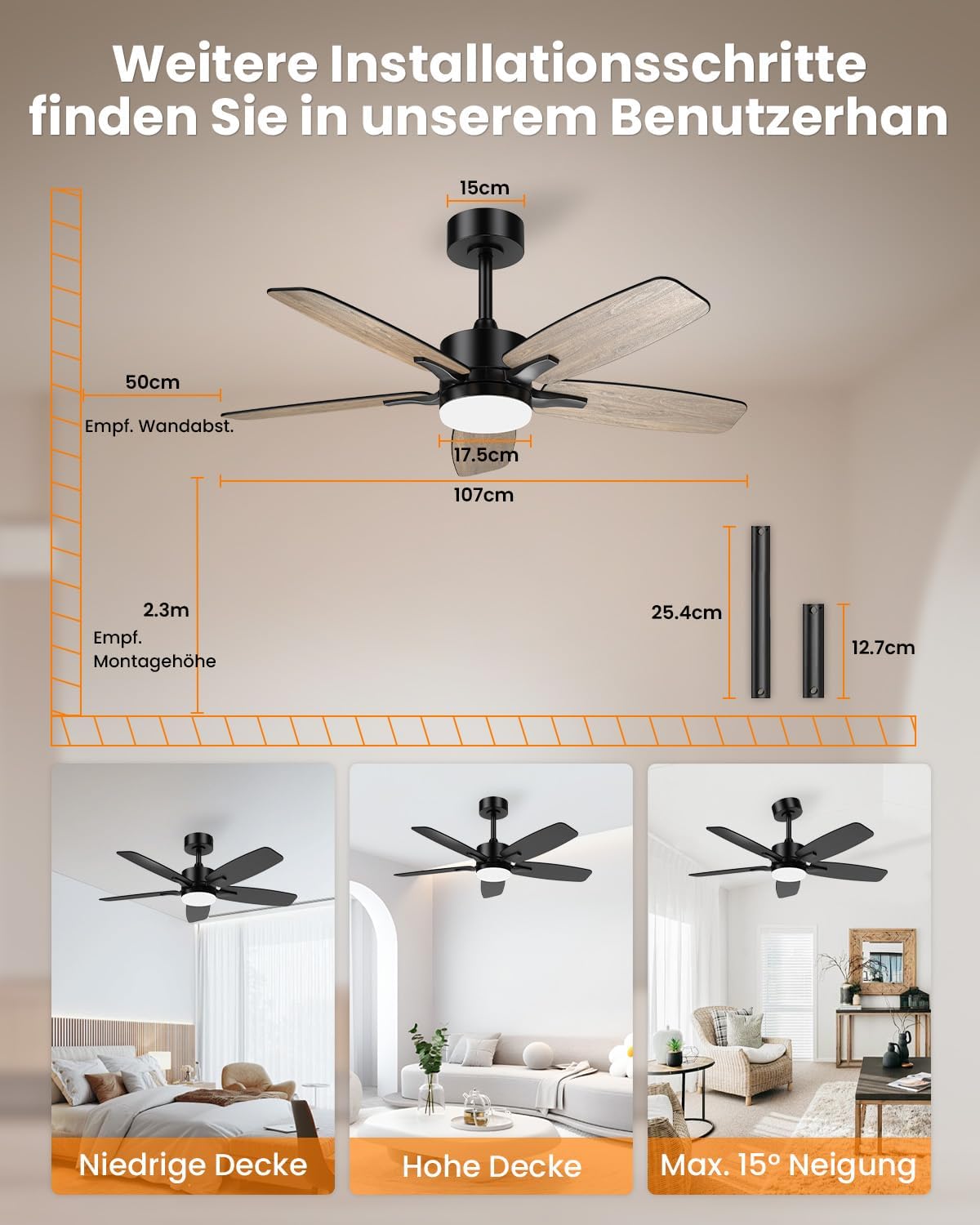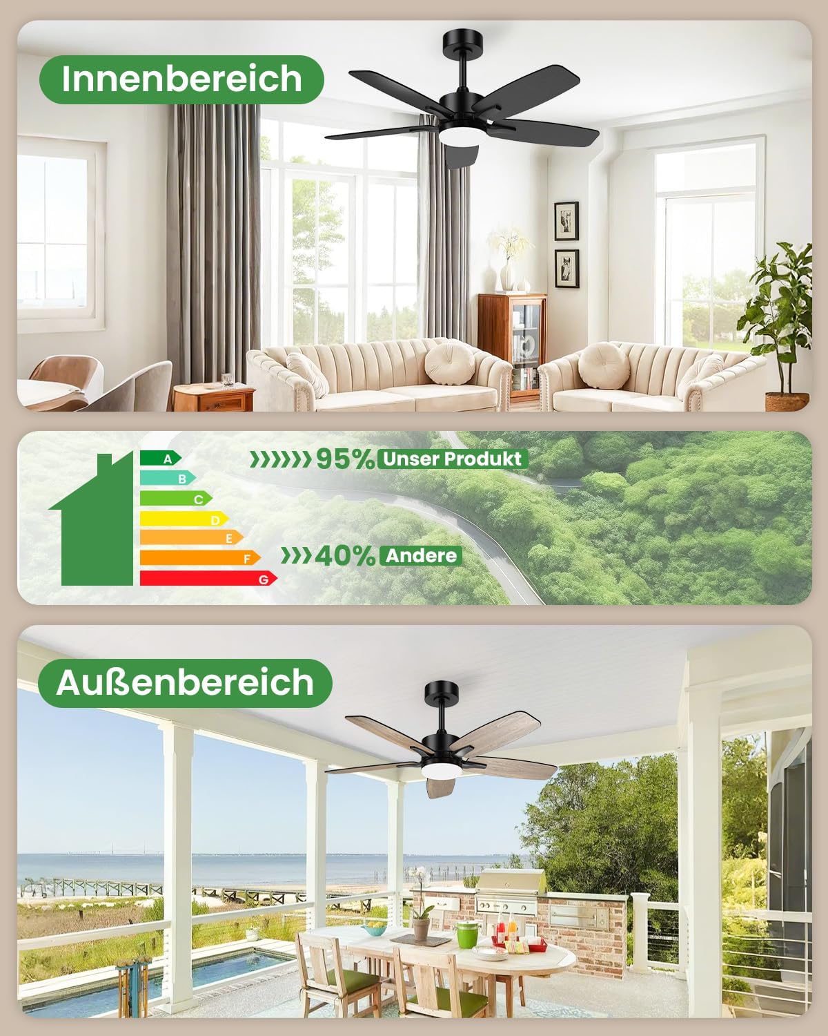 Stropni ventilator združuje močno hlajenje, tiho delovanje in elegantno zasnovo v enem kompaktnem modelu. S tihim magnetnim DC motorjem, nastavljivo LED osvetlitvijo in obojestranskimi lesenimi krili je idealen za spalnice, dnevne sobe, pisarne ali pokrite terase.