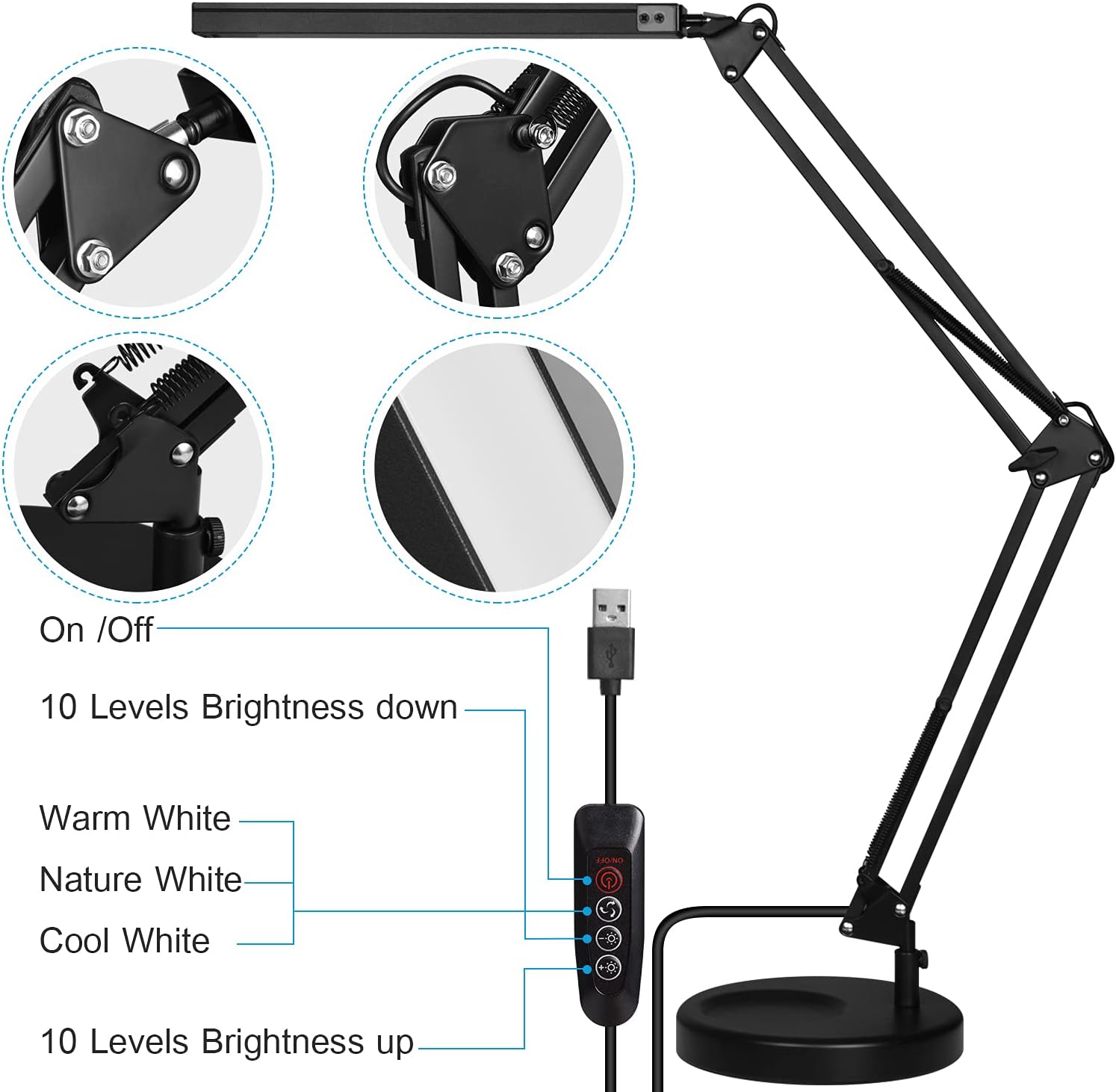 Dvojna uporaba: lahko se uporablja kot svetilka s sponko na robu mize ali kot samostoječa namizna svetilka