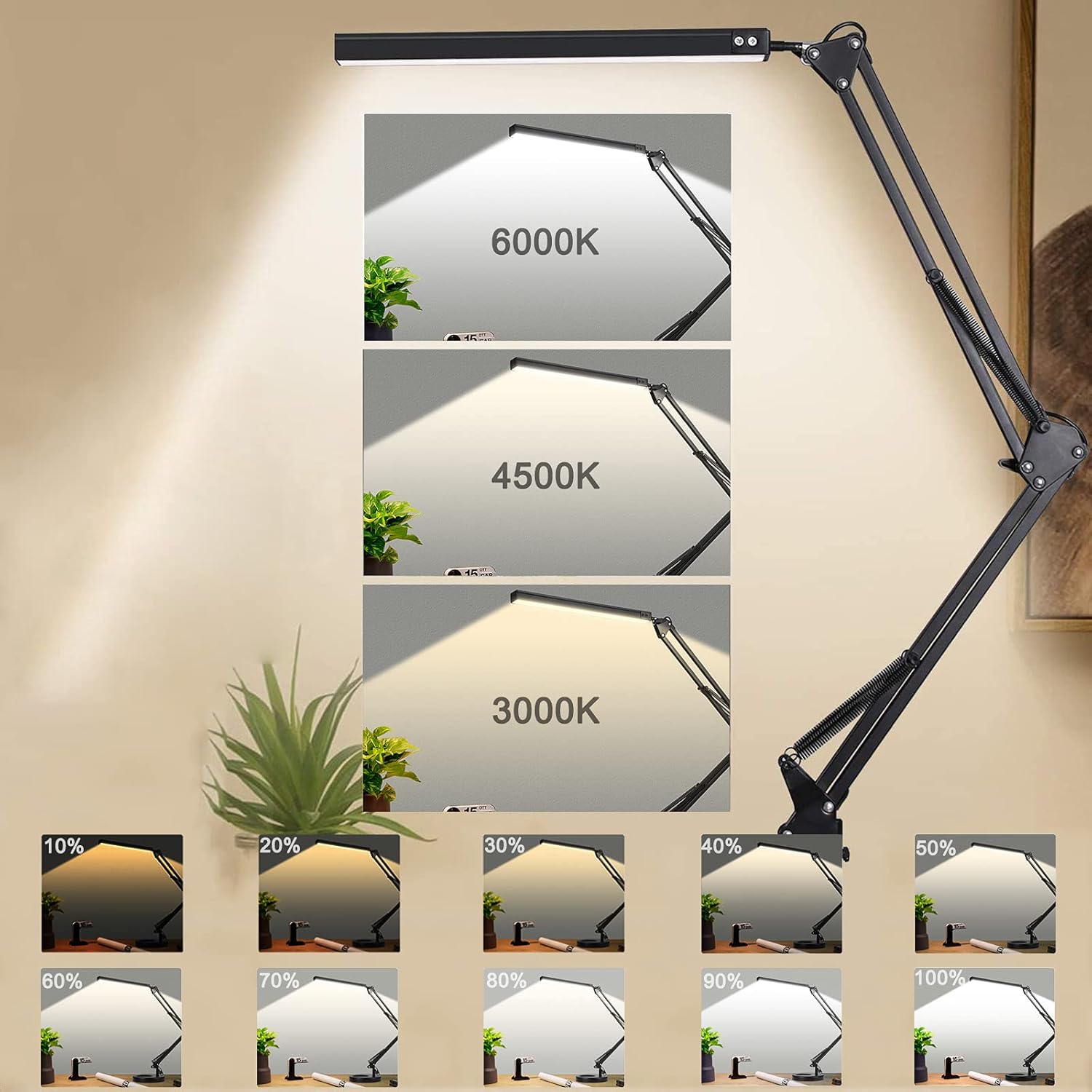 Namizna svetilka z nastavljivo svetilnostjo – s sponko in podstavkom