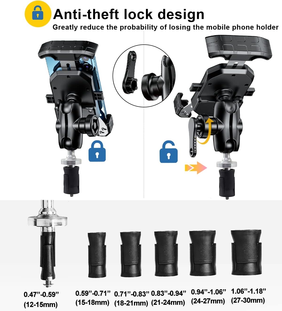 Nosilec je zasnovan za vgradnjo v cevni del krmilne cevi motornega kolesa. Ponuja izjemno stabilnost, enostavno upravljanje z eno roko ter 720° prilagodljivo nastavitev za optimalen pogled med vožnjo.