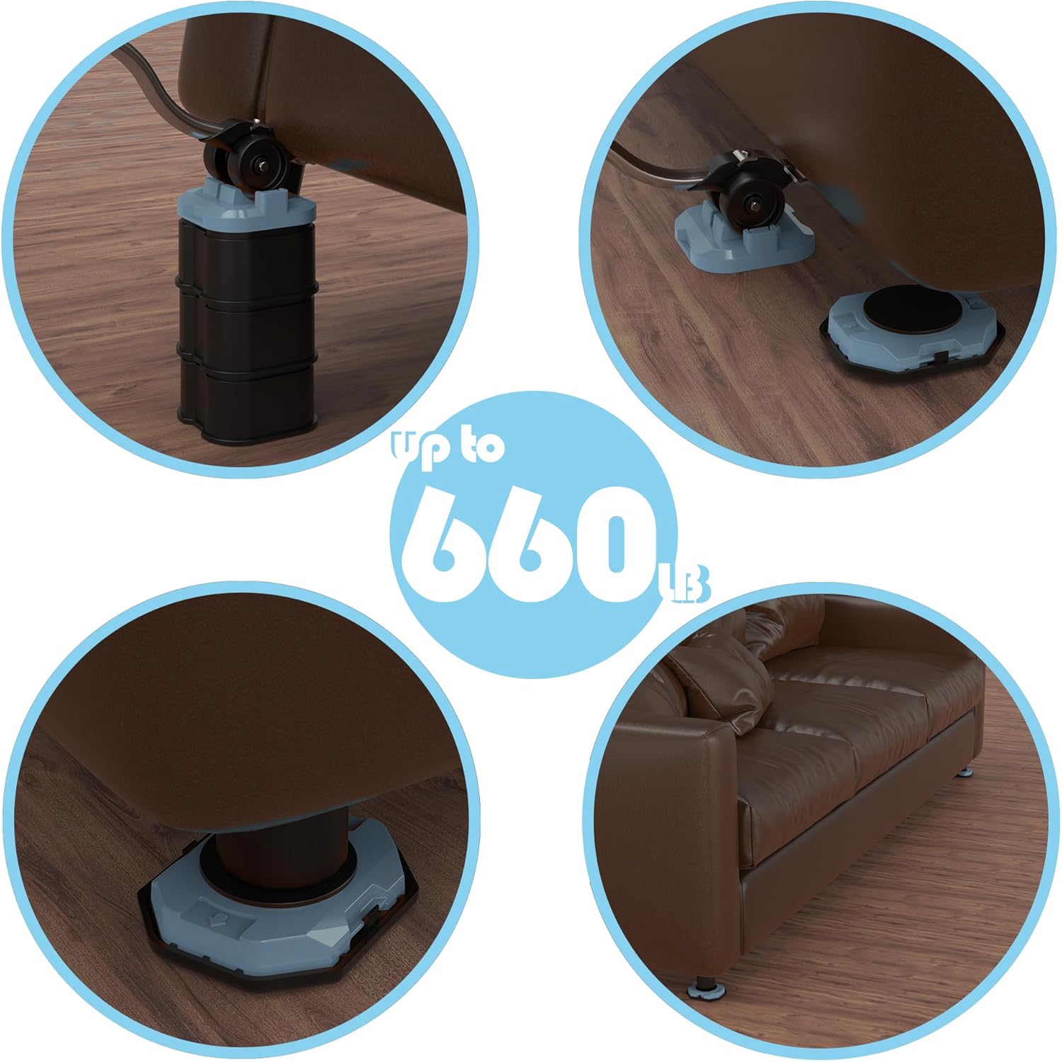 Premikanje težkega pohištva še nikoli ni bilo tako preprosto. ONEON predstavlja praktičen komplet za dvigovanje in drsenje pohištva, ki omogoča enostavno prestavljanje težkih kosov po parketu, laminatu ali preprogi – brez napora, poškodb tal ali bolečin v hrbtu.