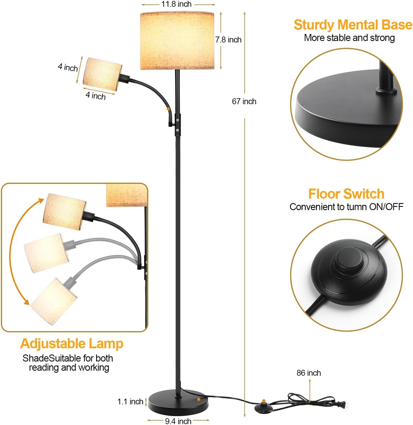 Enostavna uporaba: dve stikali na kovinskem drogovi omogočata ločeno vklapljanje talne in čitalne svetilke; priročno stikalo za vklop s stopalom omogoča prostoročno upravljanje.