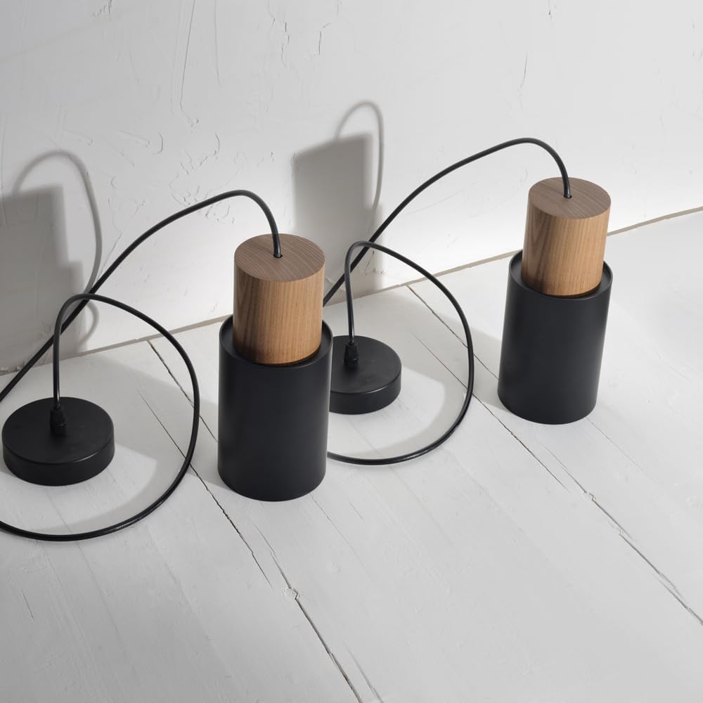 Ta viseča svetilka združuje retro industrijski slog z modernim pridihom. Unikatna kombinacija ročno lakiranega lesenega stebra in debelostenskega aluminijastega senčnika nudi trajnost in estetiko.