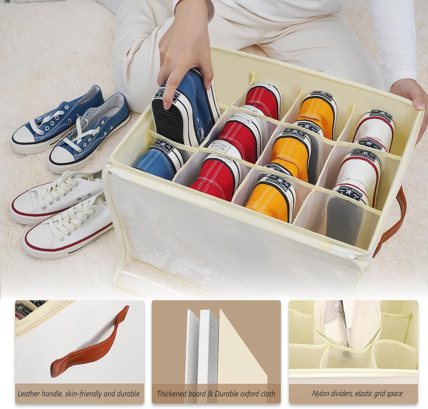 Elegantna in praktična škatla za čevlje ponuja pametno rešitev za urejeno shranjevanje obutve in oblačil. Zasnovana je tako, da se popolnoma prilega klopi z odlagalnim prostorom, garderobni omari ali omari v predsobi. Zložljiva struktura, prozoren pokrov in mehke mrežaste delilne stene omogočajo učinkovito organizacijo brez potrebe po sestavljanju.