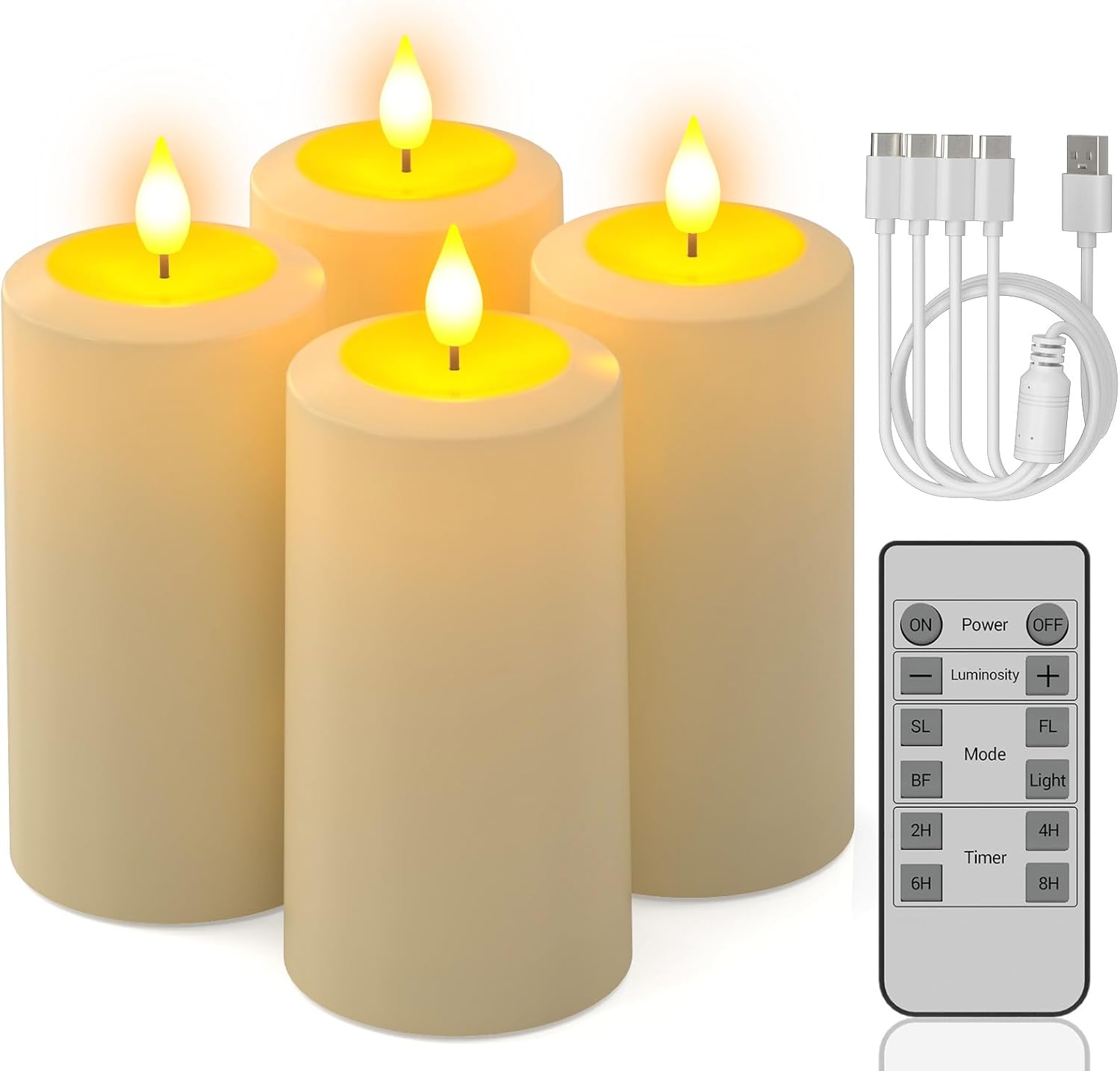 Elegantne polnilne LED sveče z realistično imitacijo plamena, primerno za varno in prijetno ambientalno osvetlitev doma ali na prostem.