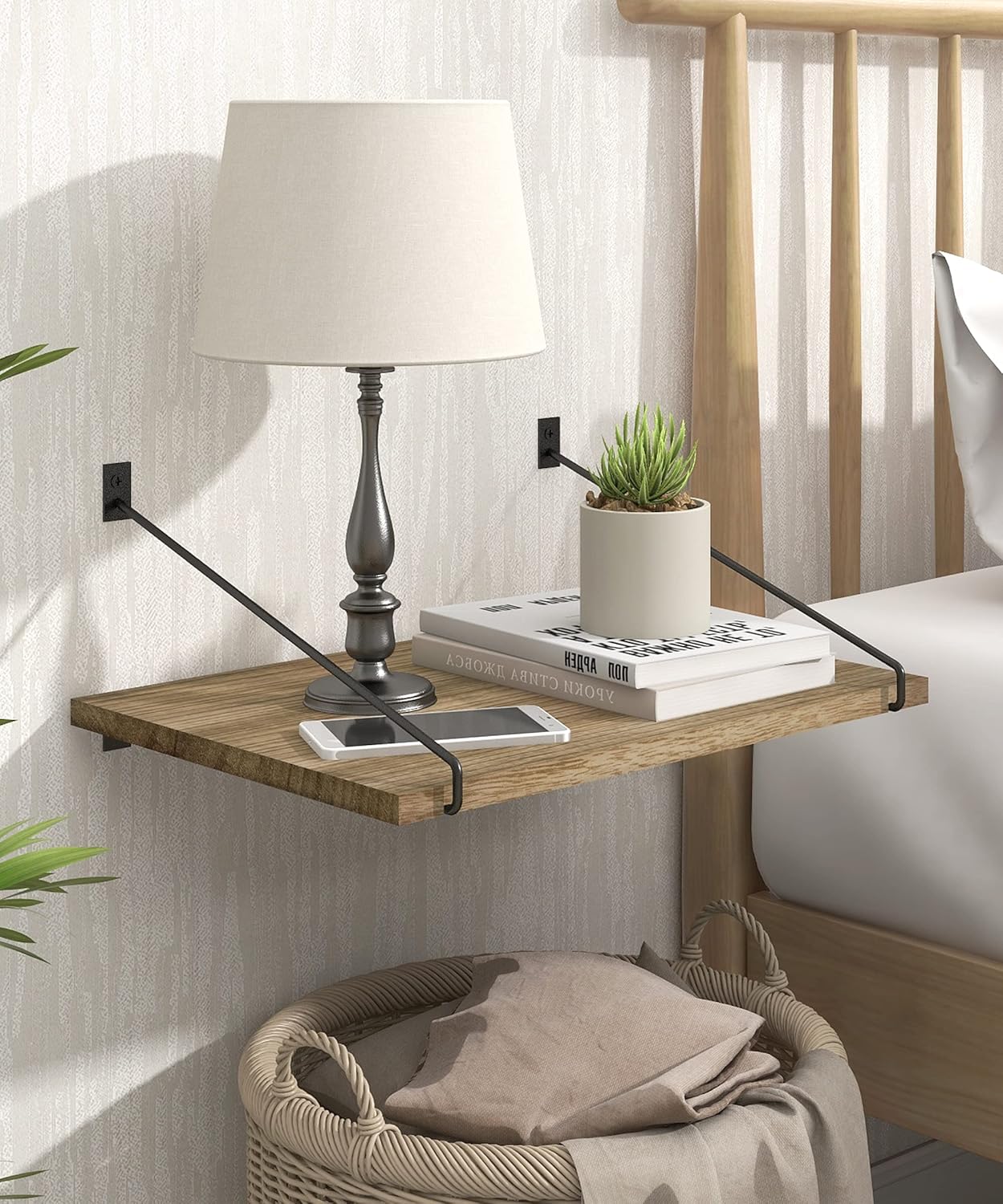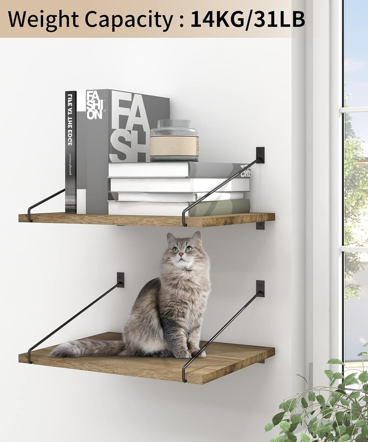PETRALA Lesena stenska viseča polica z metalnimi nosilci