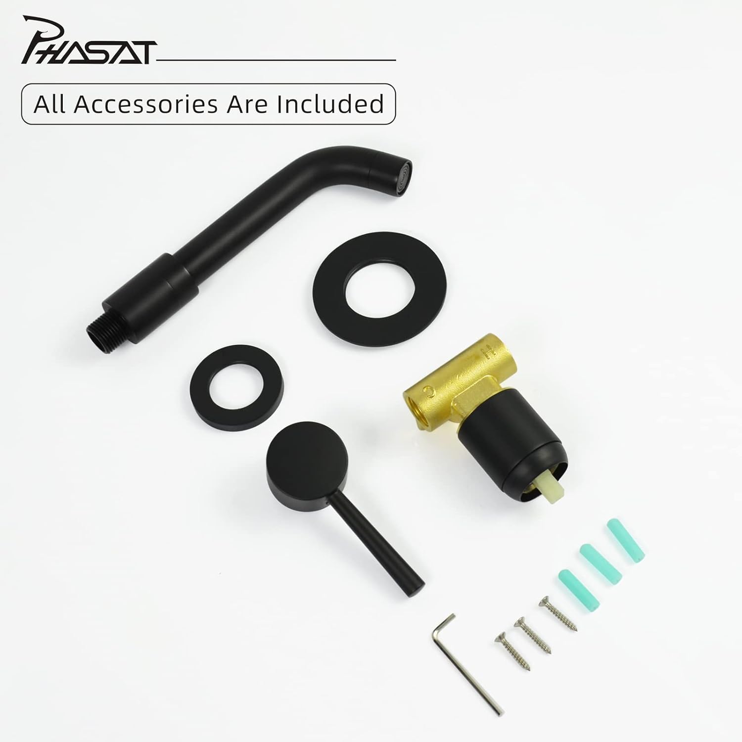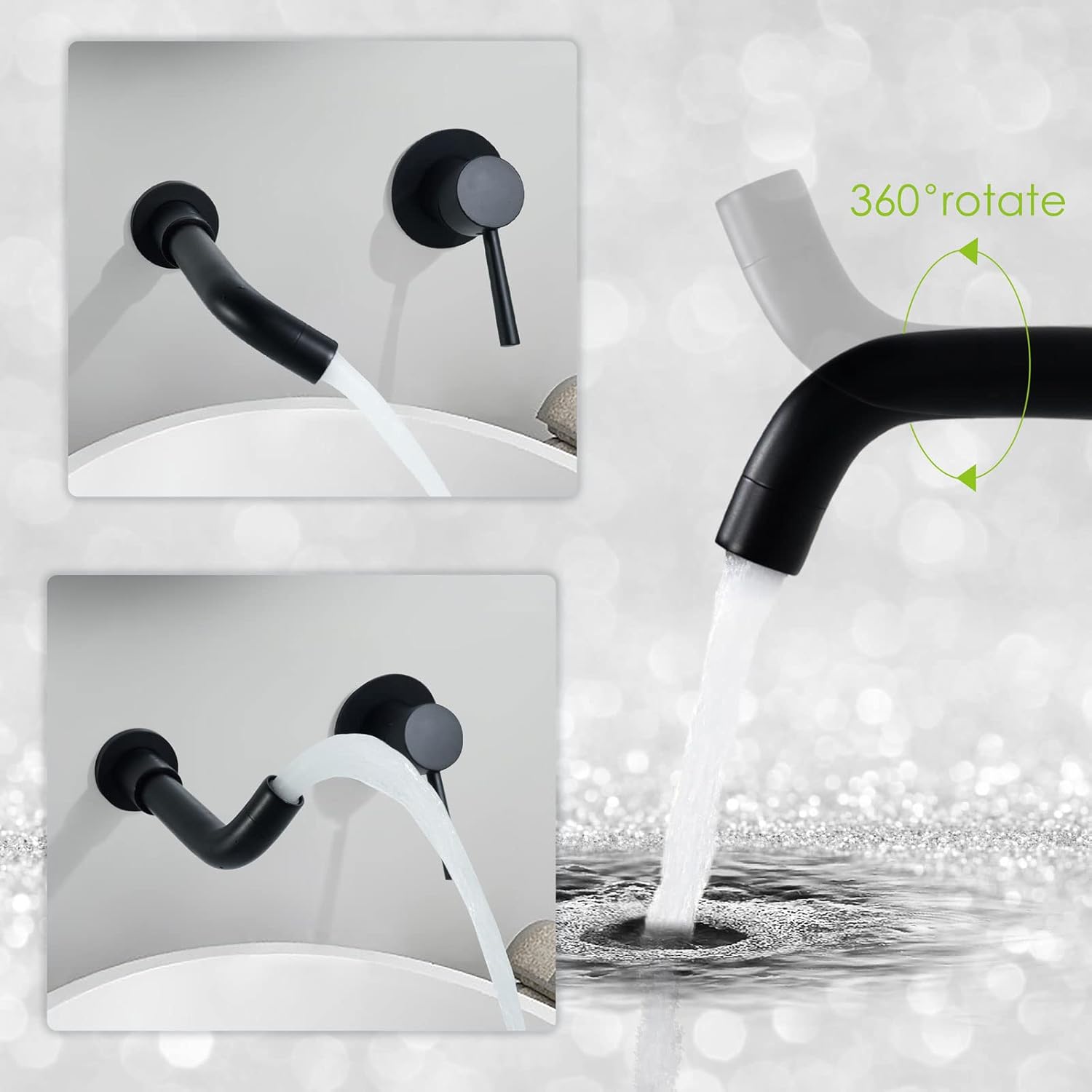 PHASAT stenska medeninasta armatura za umivalnik z 360° vrtljivim izlivom