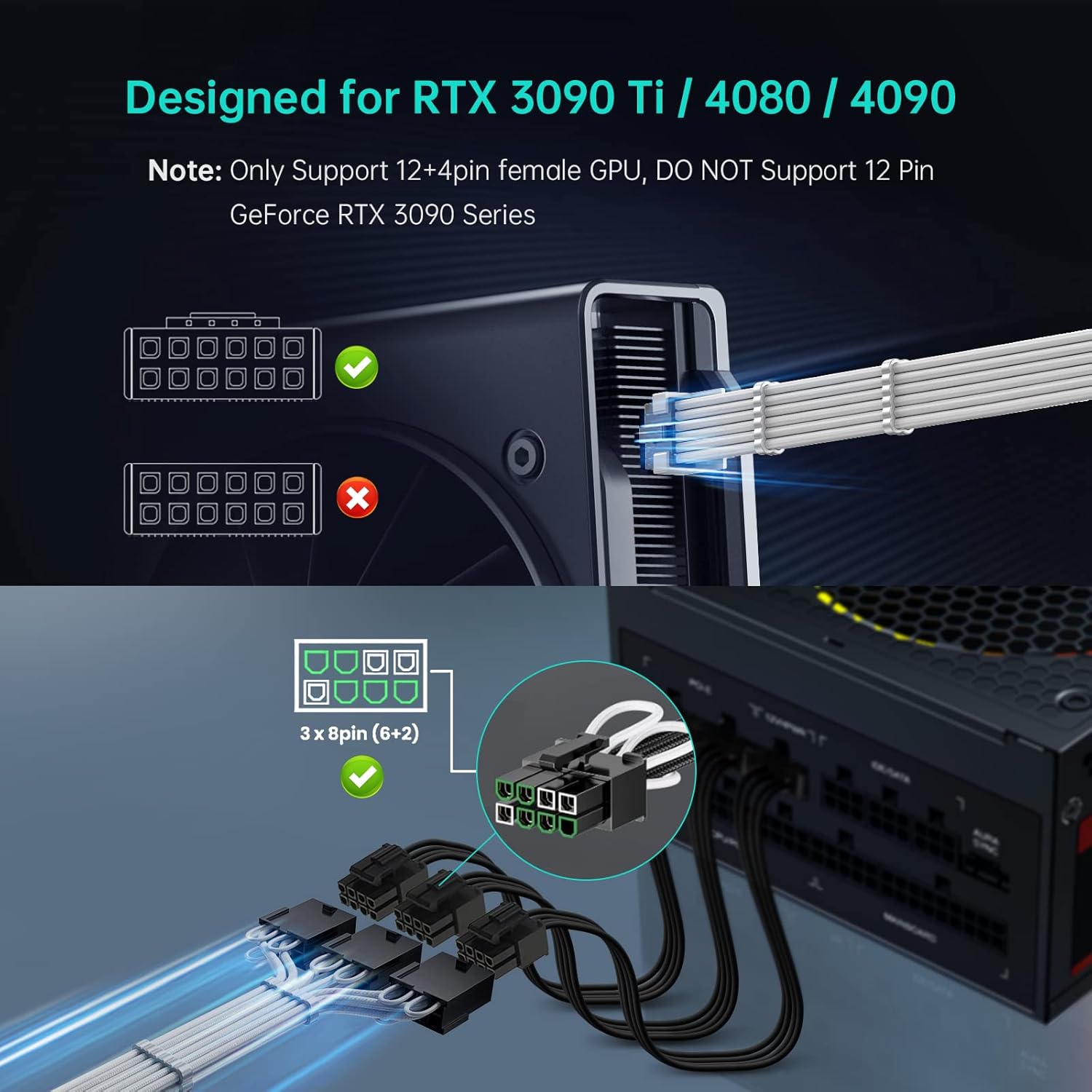 Posebej zasnovan za novejše grafične kartice – omogoča povezavo z 12VHPWR napajalnim priključkom pri najnovejših modelih RTX