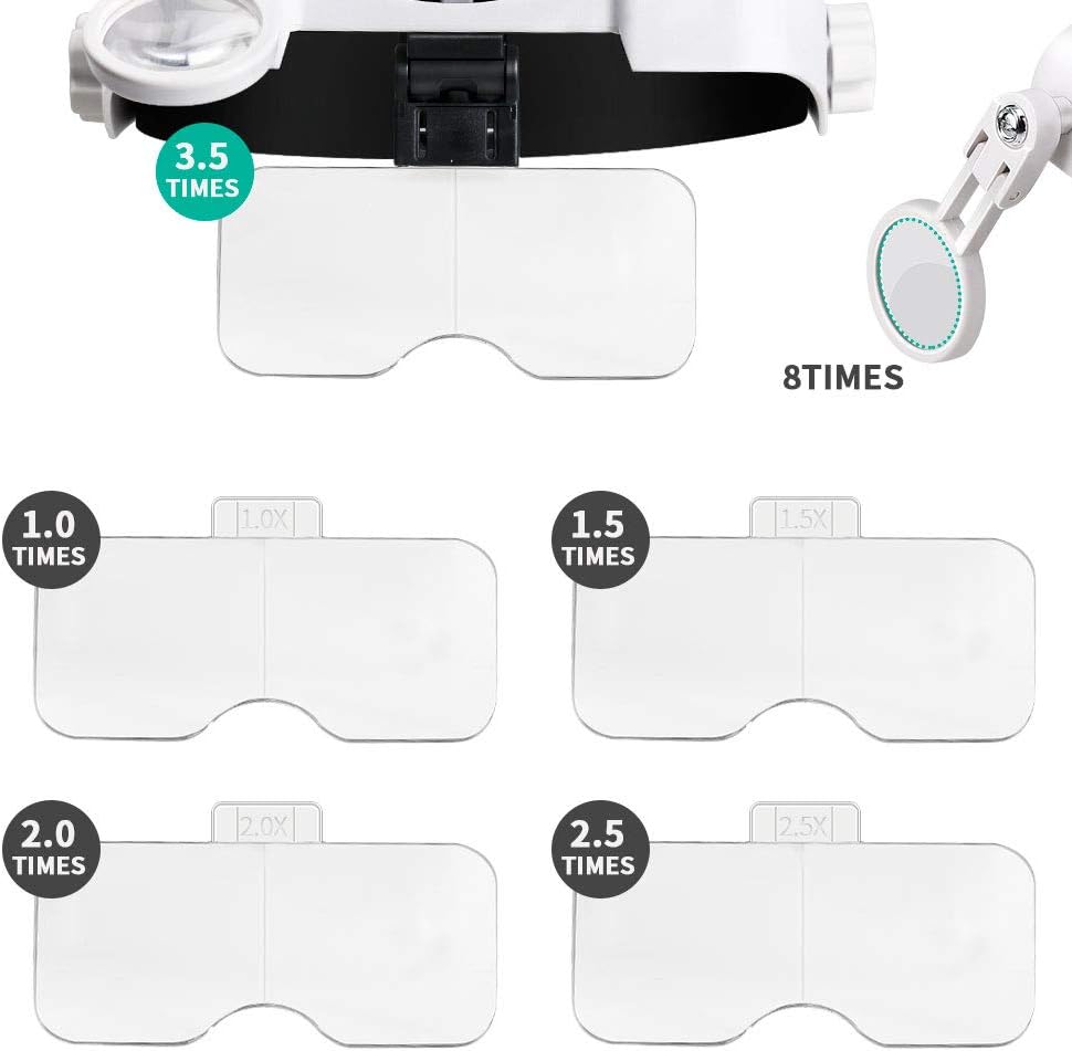 Več leč: komplet vsebuje 5 izmenljivih leč (1.0x, 1.5x, 2.0x, 2.5x, 3.5x) ter dodatno okroglo pomožno lečo (8x);