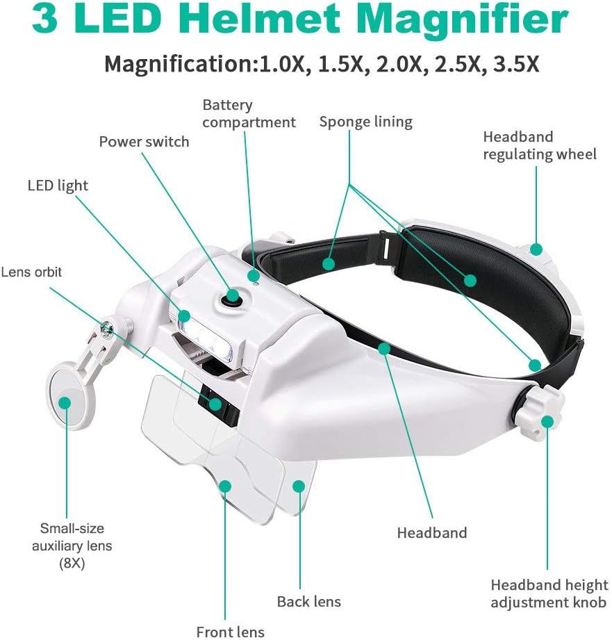 Prostoročna povečevalna očala z 3 LED lučkami - 14x povečava
