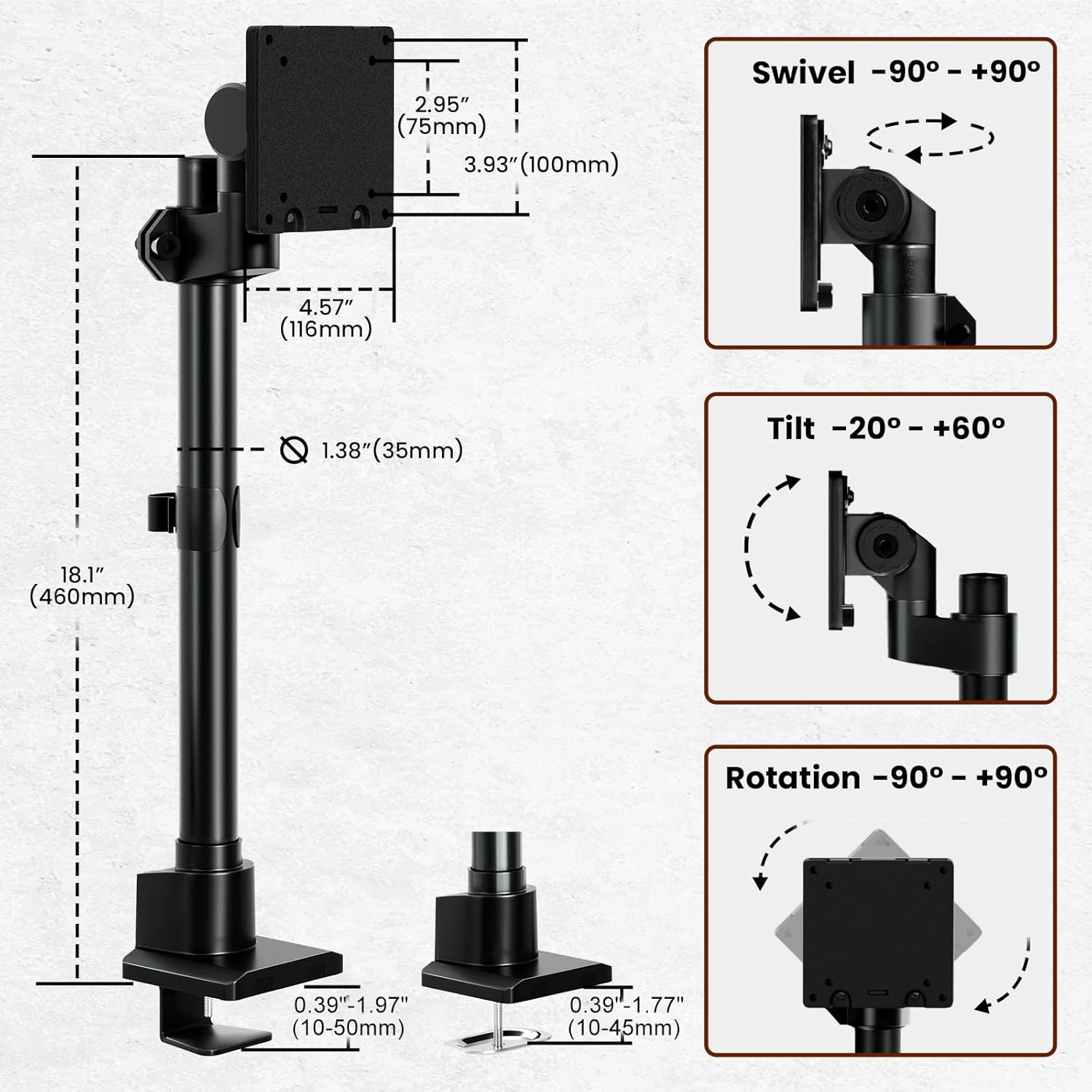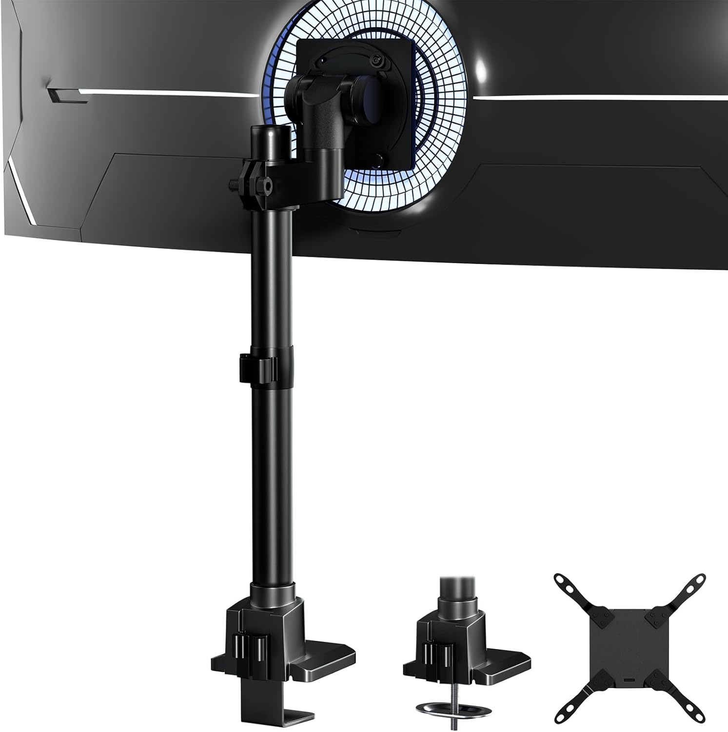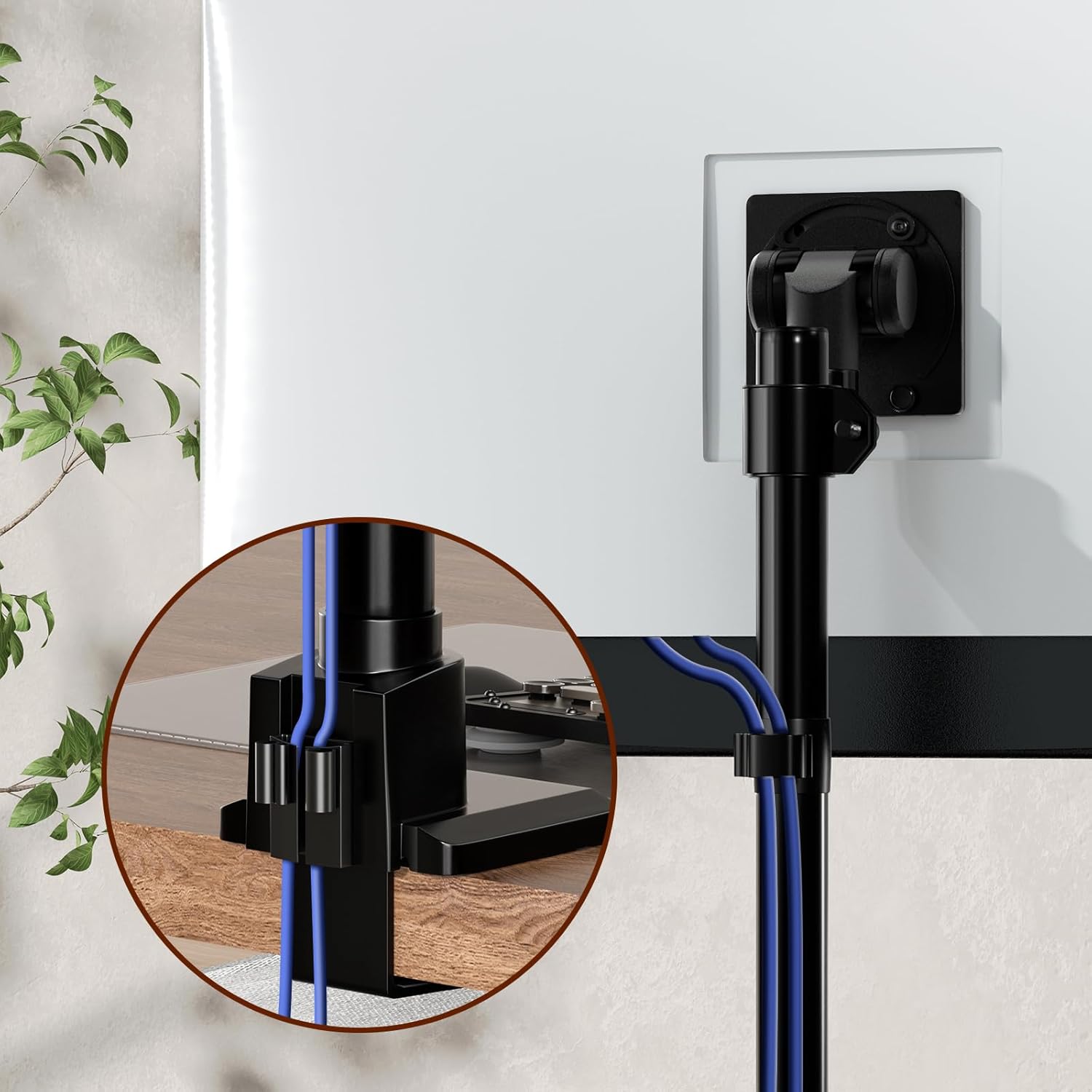 Nastavek za mizo za monitor z vrtljivim in nagibnim mehanizmom, ki podpira zaslone od 24 do 57 palcev (60 - 144 cm) in omogoča popolno prilagoditev gledanja.
