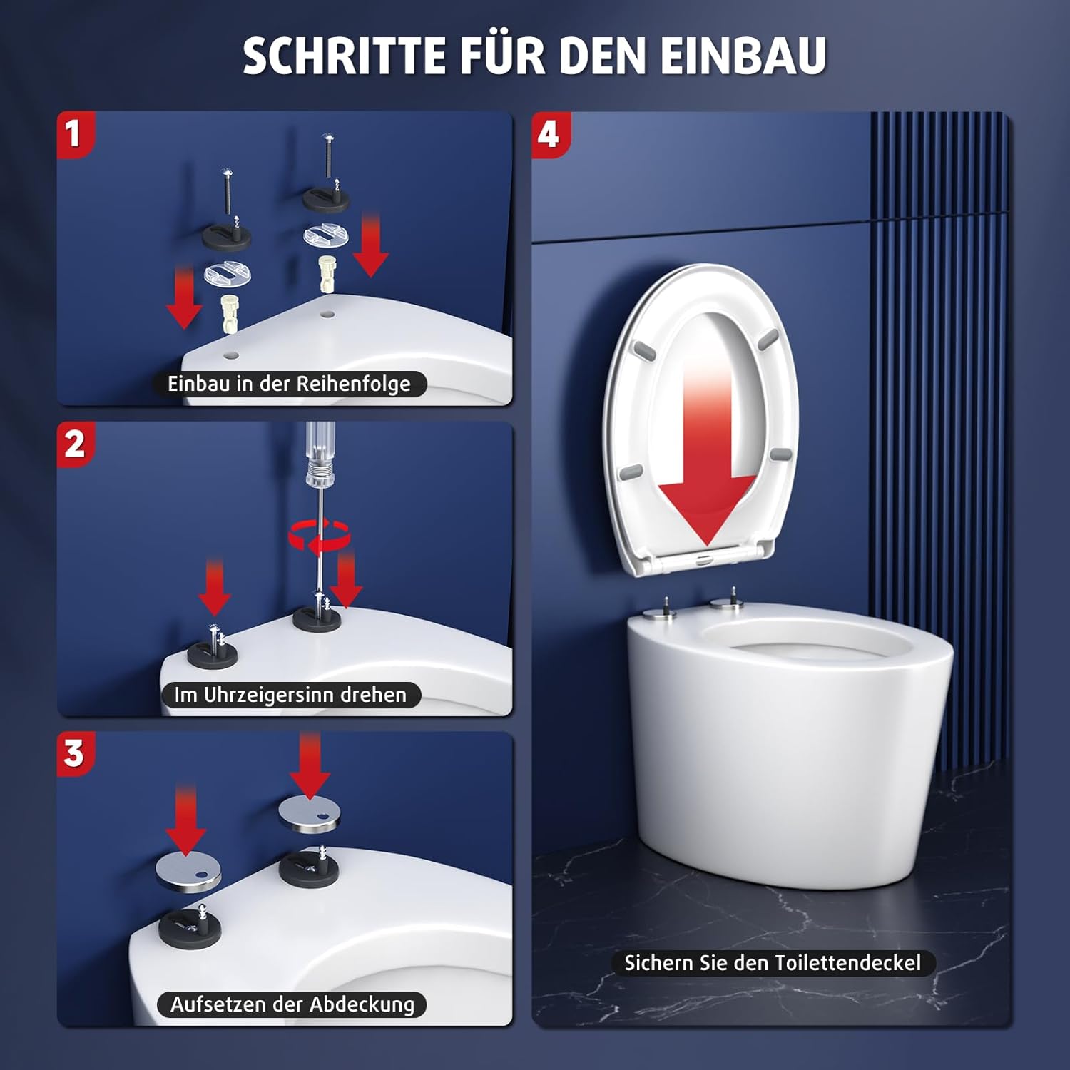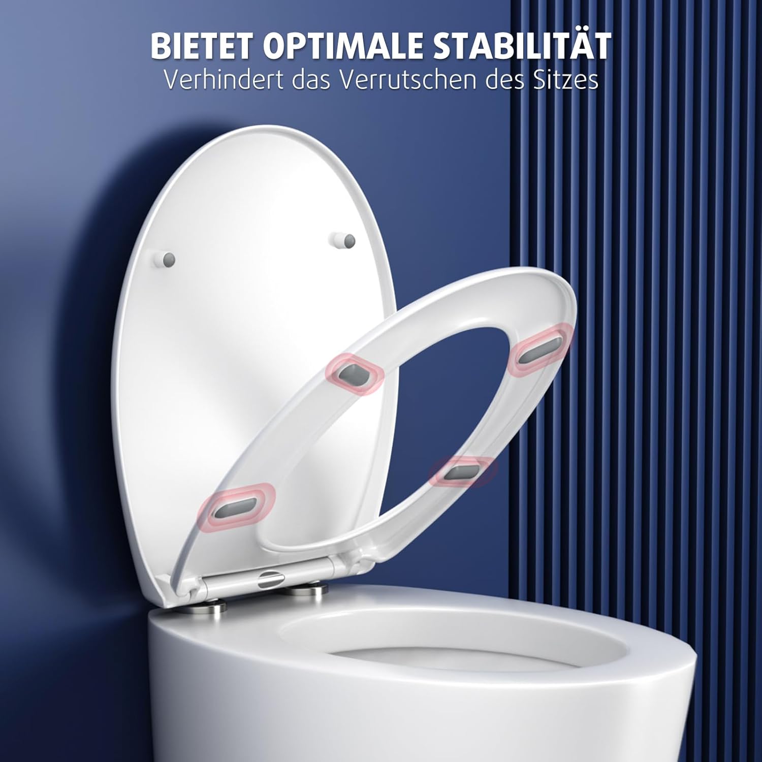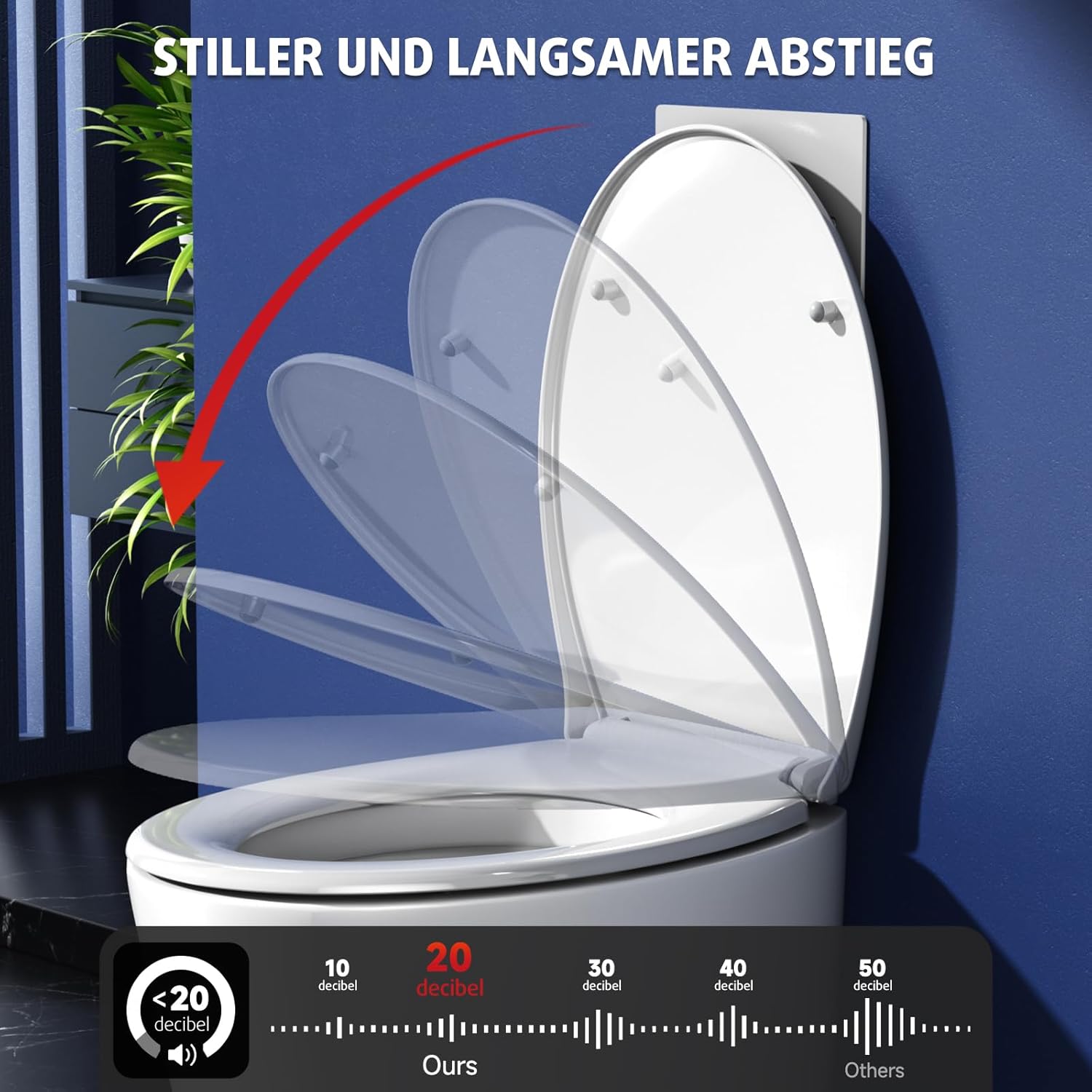 Mehko zapiranje (Soft Close): Dvostopenjski dušilni mehanizem preprečuje treskanje pokrova in zmanjšuje obrabo tečajev, hkrati pa varuje pred pripiranjem prstov.