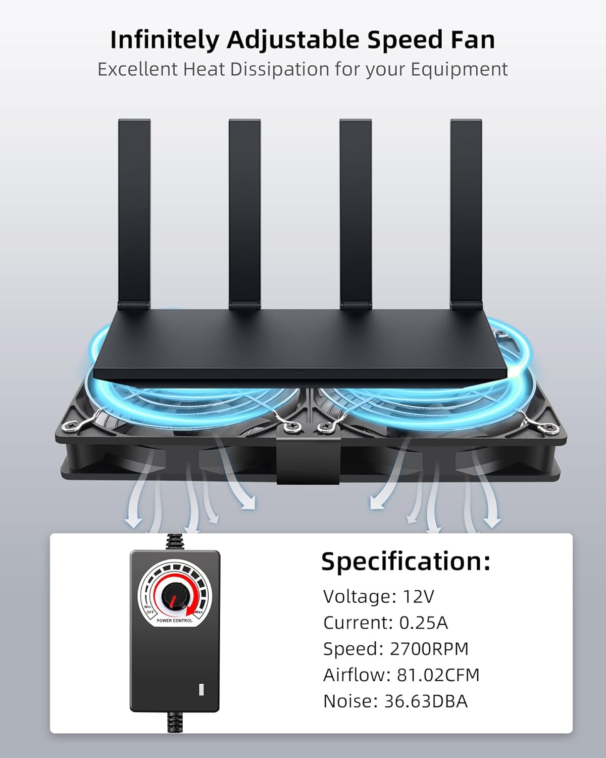 RUIZHI ventilator ponuja izjemno zmogljivo hlajenje za širok nabor naprav – od računalnikov in prenosnikov do igralnih konzol, usmerjevalnikov ali AV-opreme. Z možnostjo nastavitve hitrosti delovanja omogoča prilagoditev med tihim in močnim hlajenjem. Robustna kovinska zasnova s prašno barvanim premazom zagotavlja dolgo življenjsko dobo in dodatno varnost.