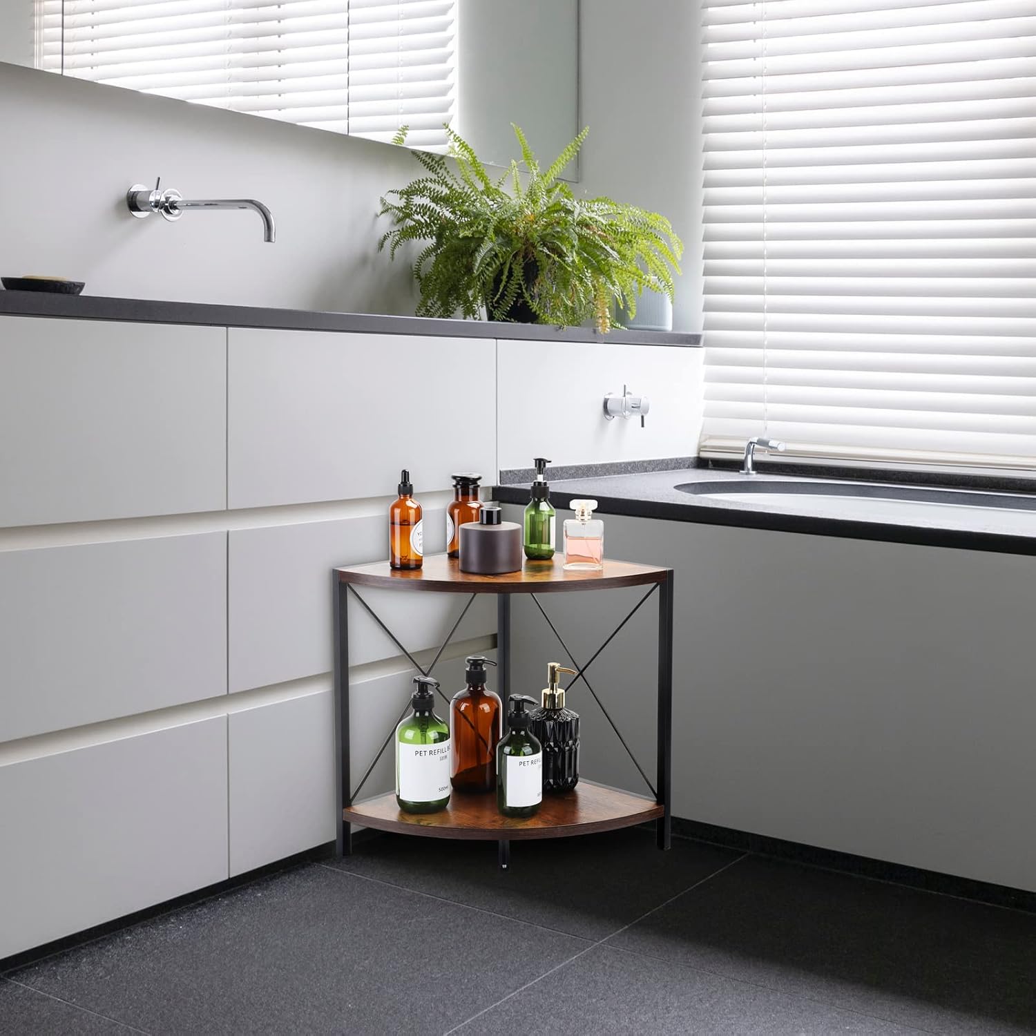 Kompaktna in elegantna rešitev za shranjevanje, ki združuje rustikalni videz lesa z industrijskim kovinskim okvirjem. Primerna je za kuhinjo, dnevno sobo ali pisarno ter odlično izkoristi prostor v kotu.