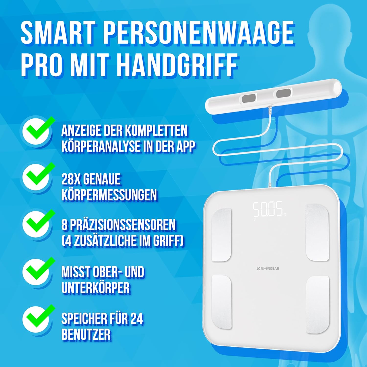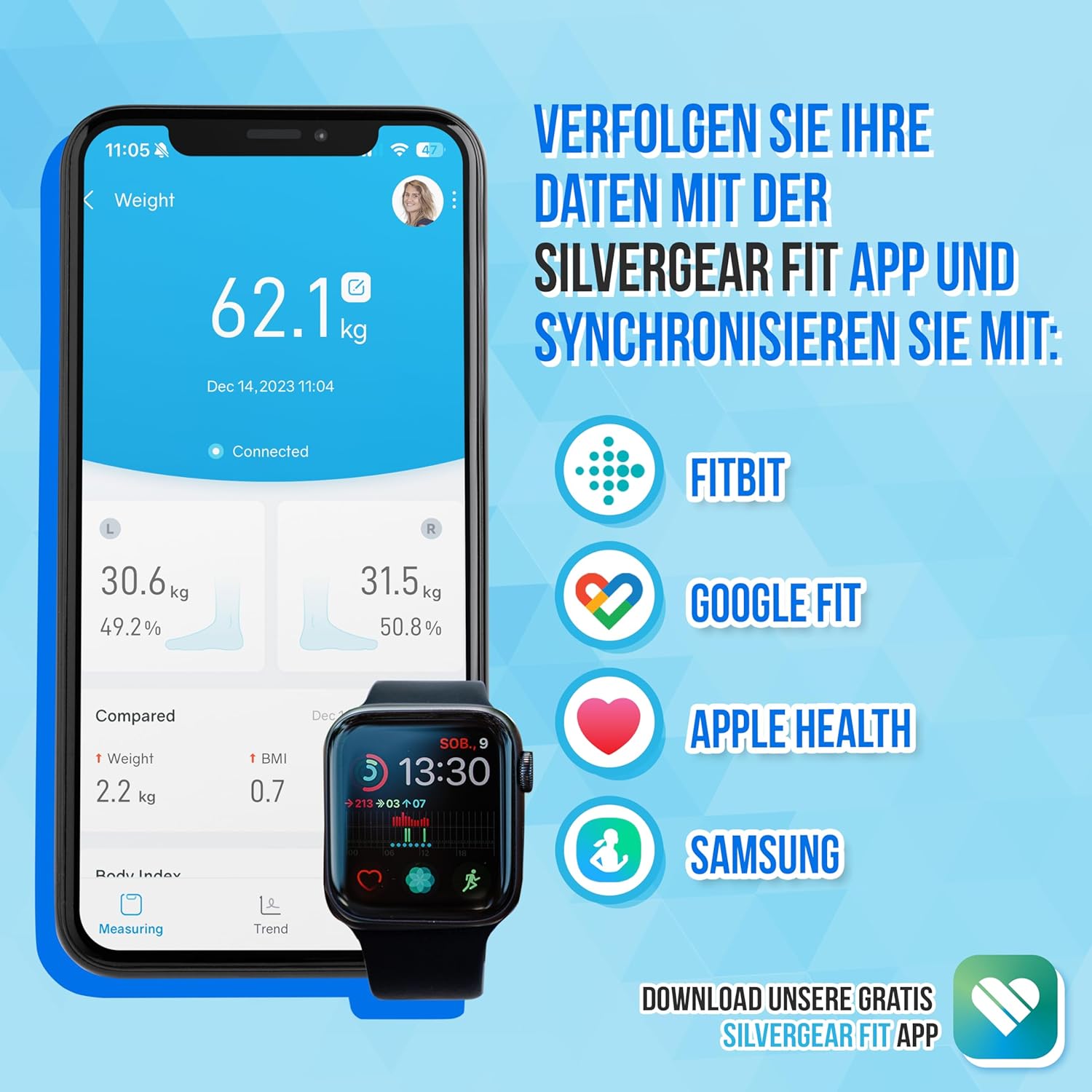 SILVERGEAR osebna tehtnica z ročnimi senzorji, aplikacijo in naprednim merjenjem telesne sestave