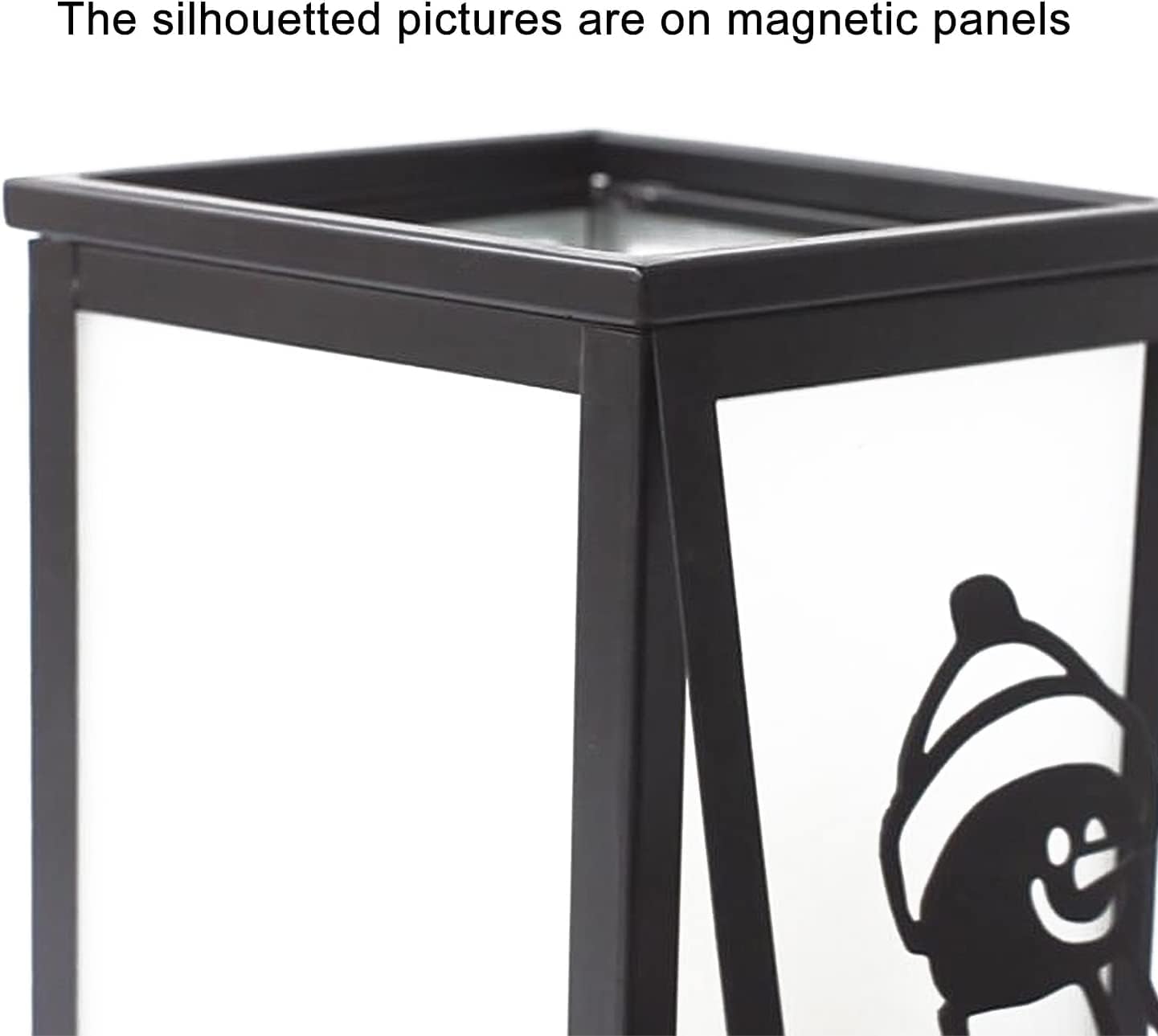 Vsebina paketa: 1 × kovinska laterna, 1 × LED sveča s toplim utripajočim svetlobnim učinkom, 12 × magnetne sezonske kovinske ploščice, 1 × daljinski upravljalnik.