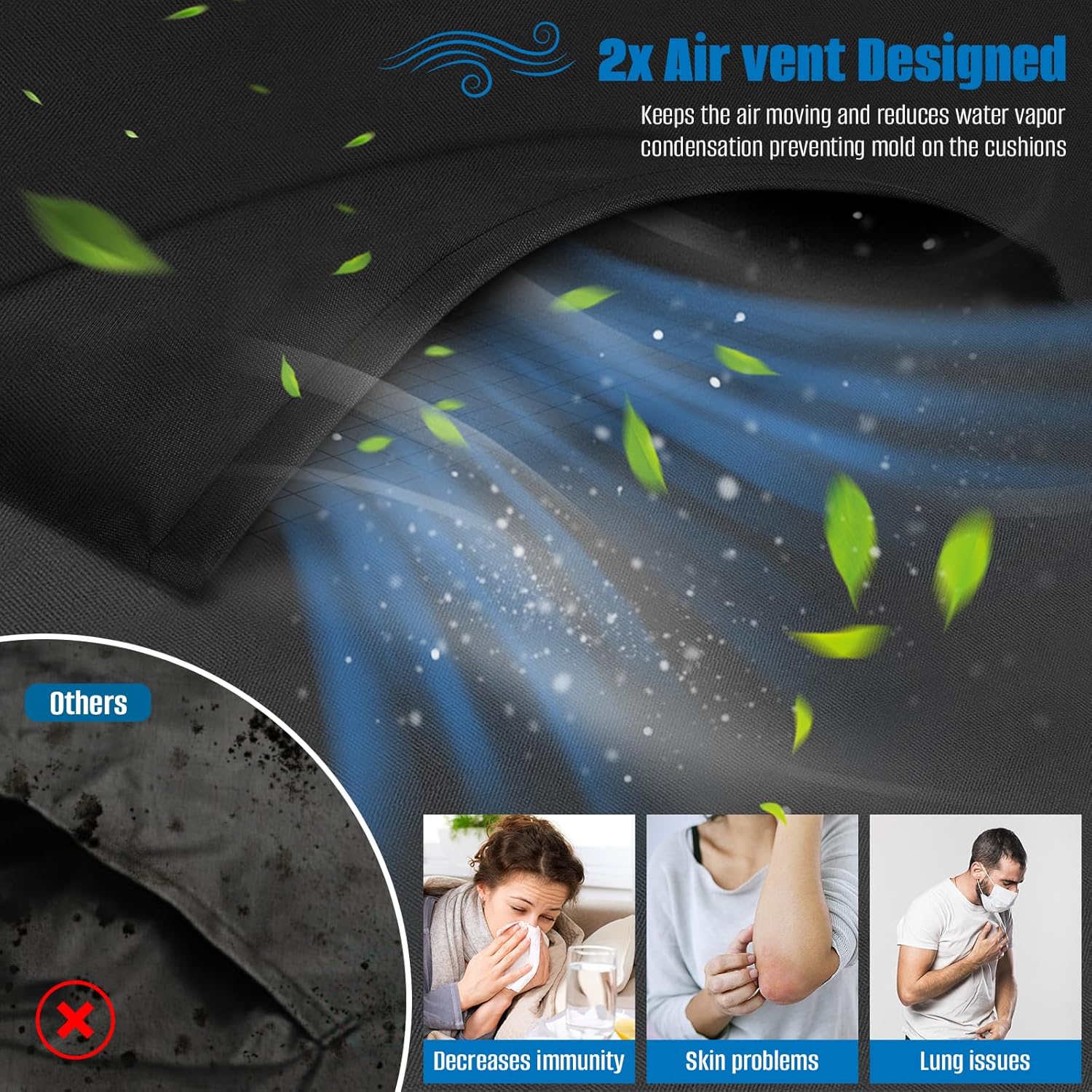 Kakovostna zaščitna prevleka SIRUITON nudi zanesljivo zaščito vašega vrtnega pohištva pred dežjem, snegom, soncem, prahom in umazanijo. Izdelana je iz debele, trpežne tkanine 420D Oxford z notranjim PVC premazom, kar zagotavlja popolno vodoodpornost in dolgotrajno odpornost na vremenske vplive skozi vse leto.