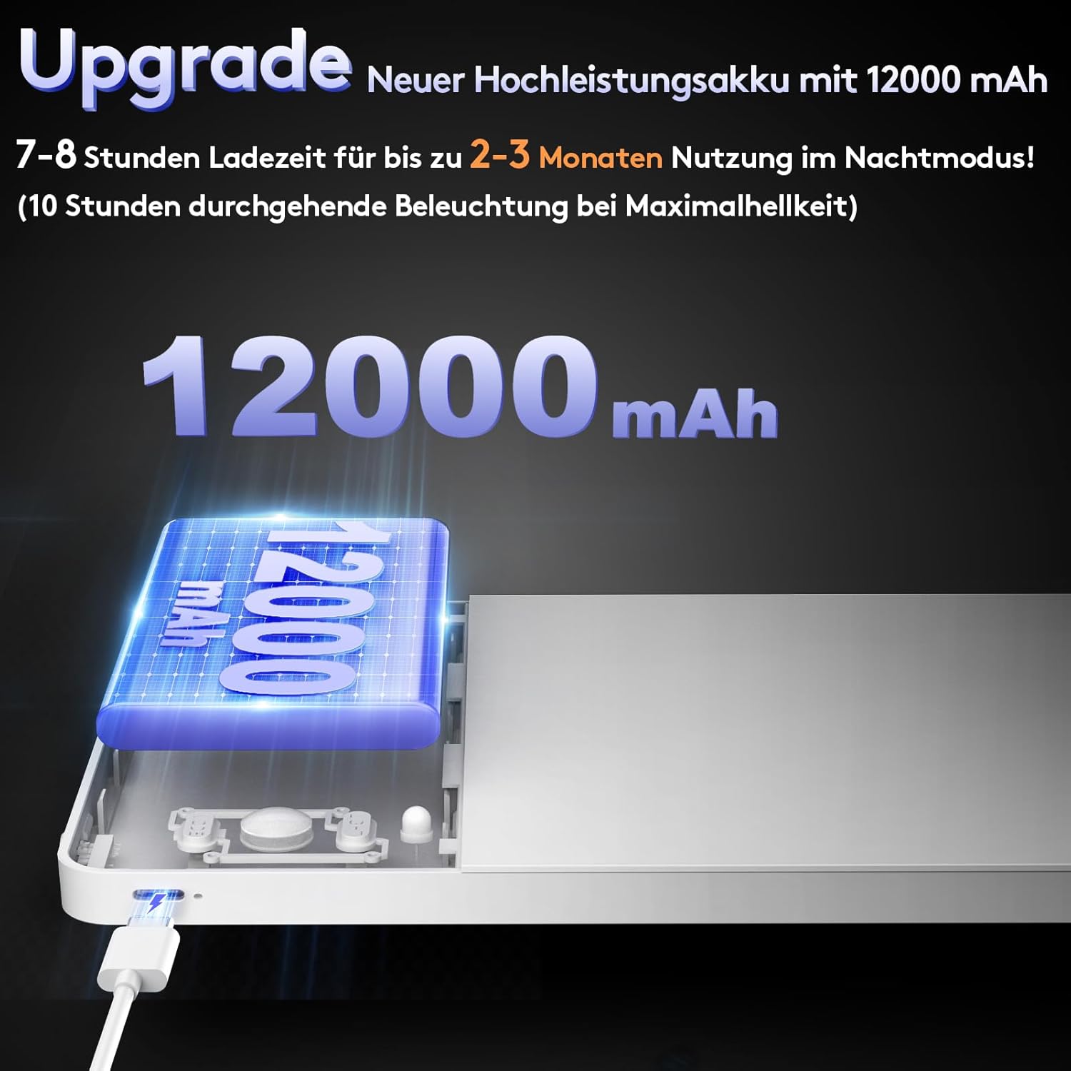 Kapaciteta baterije: 12.000 mAh (polnjenje prek USB-C, čas polnjenja 6–7 ur)
