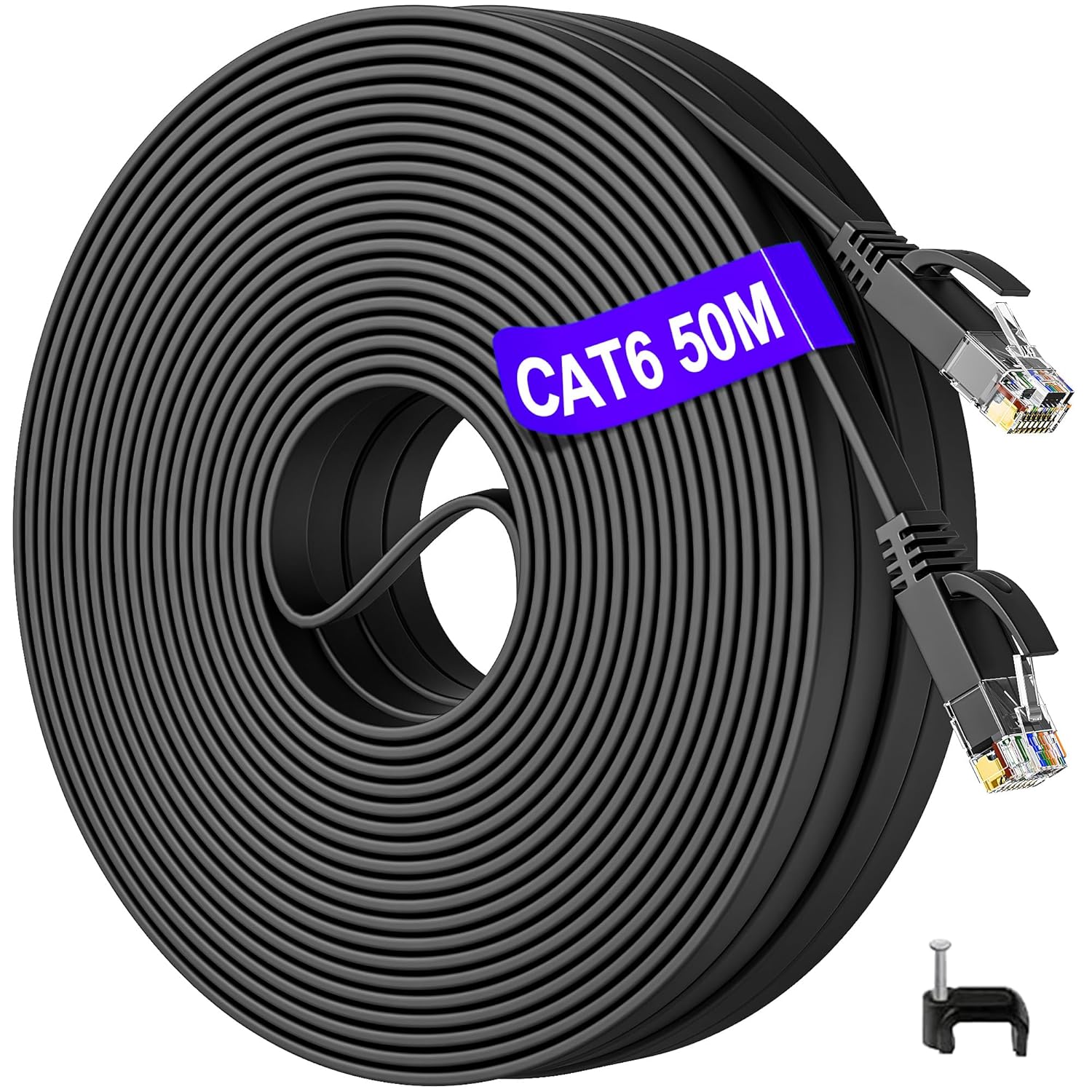 Zanesljiv mrežni kabel z dolžino 50 metrov zagotavlja stabilno in hitro povezavo do 1000 Mbps, primerno za domačo, pisarniško ali igralno uporabo. Ploska zasnova omogoča diskretno namestitev pod preproge, ob stene ali za pohištvom, hkrati pa preprečuje vozlanje in prihrani prostor.