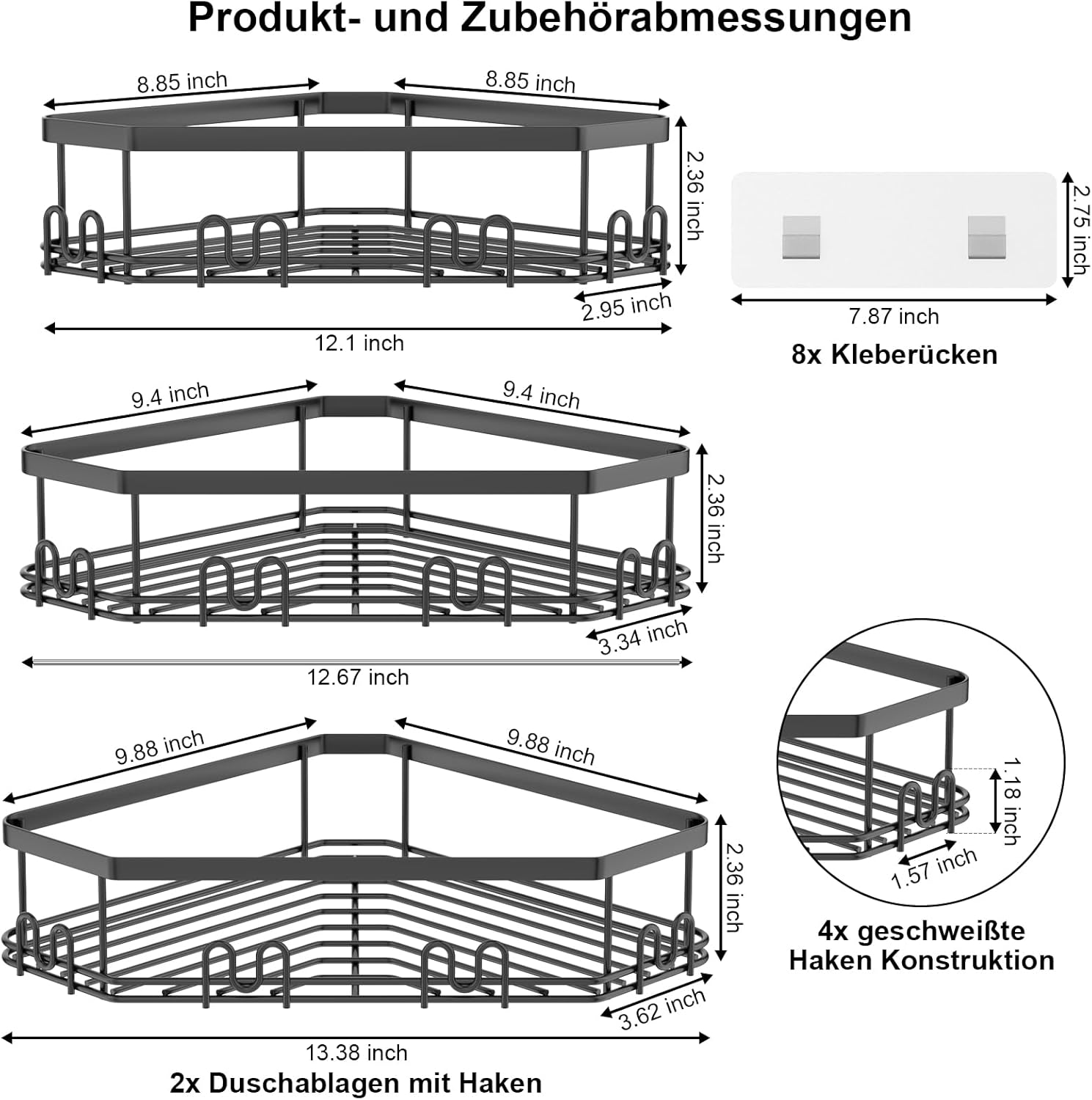 STEUGO kotna polica za prho z namestitvjo brez vrtanja - komplet 3 kosov