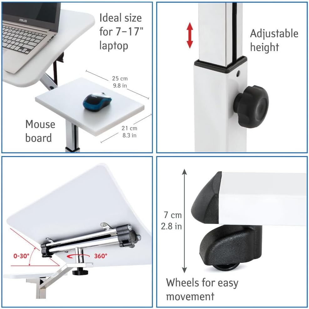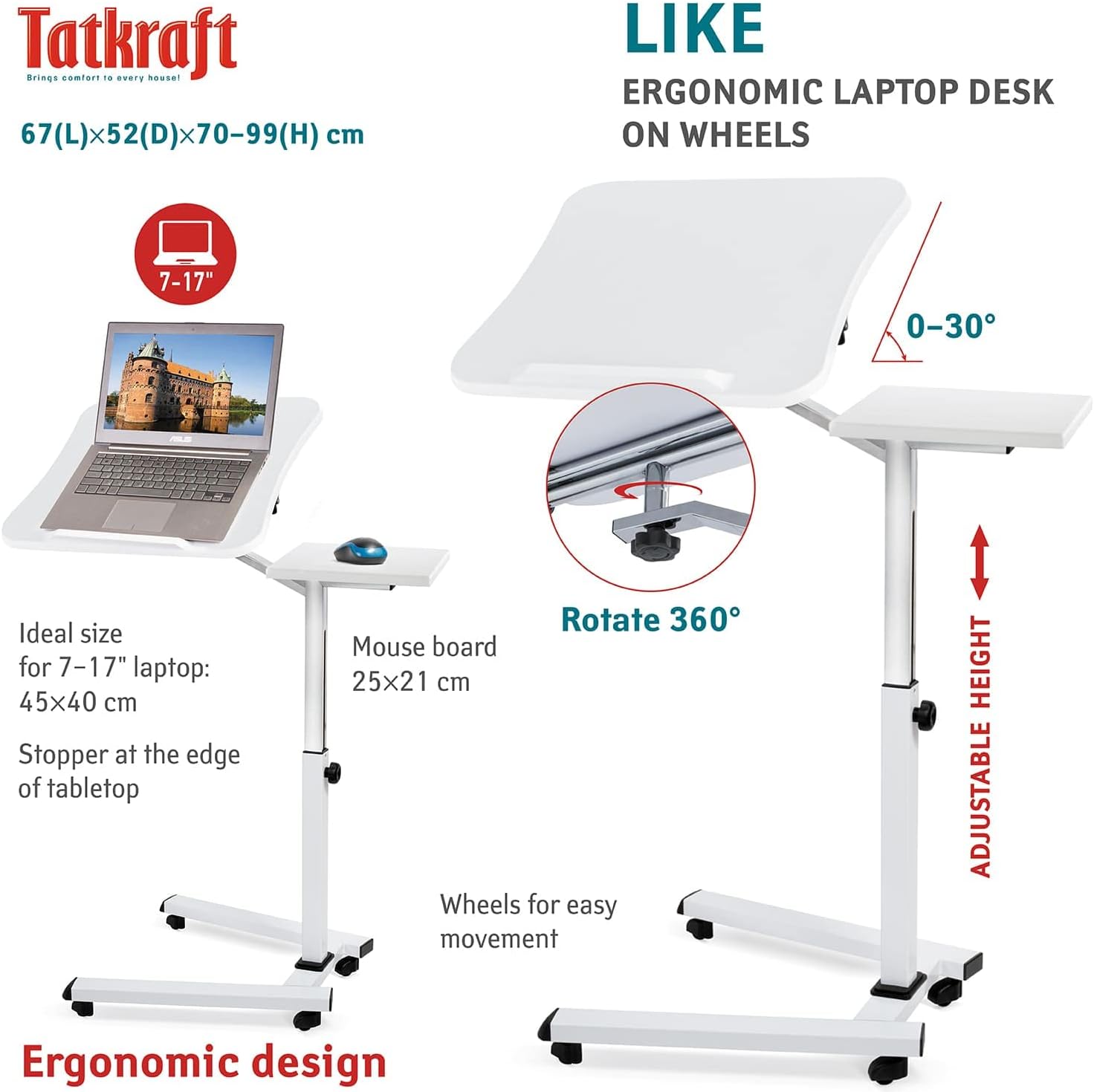 TATKRAFT nastavljiva mizica na kolesih za prenosnik z dodatno površino za miško
