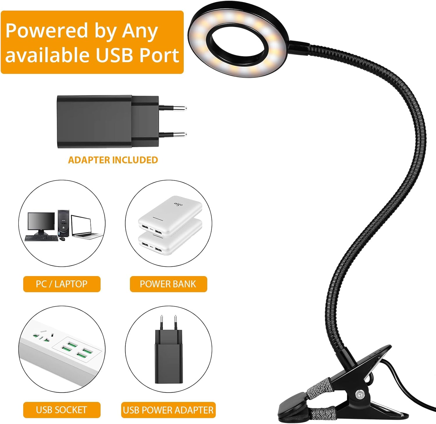 Prilagodljiva svetloba za branje, delo ali sprostitev. 3 barvne temperature in 10 stopenj zatemnitve, USB napajanje in prilagodljiv vrat laboda za popolno osvetlitev vsakega kotička.