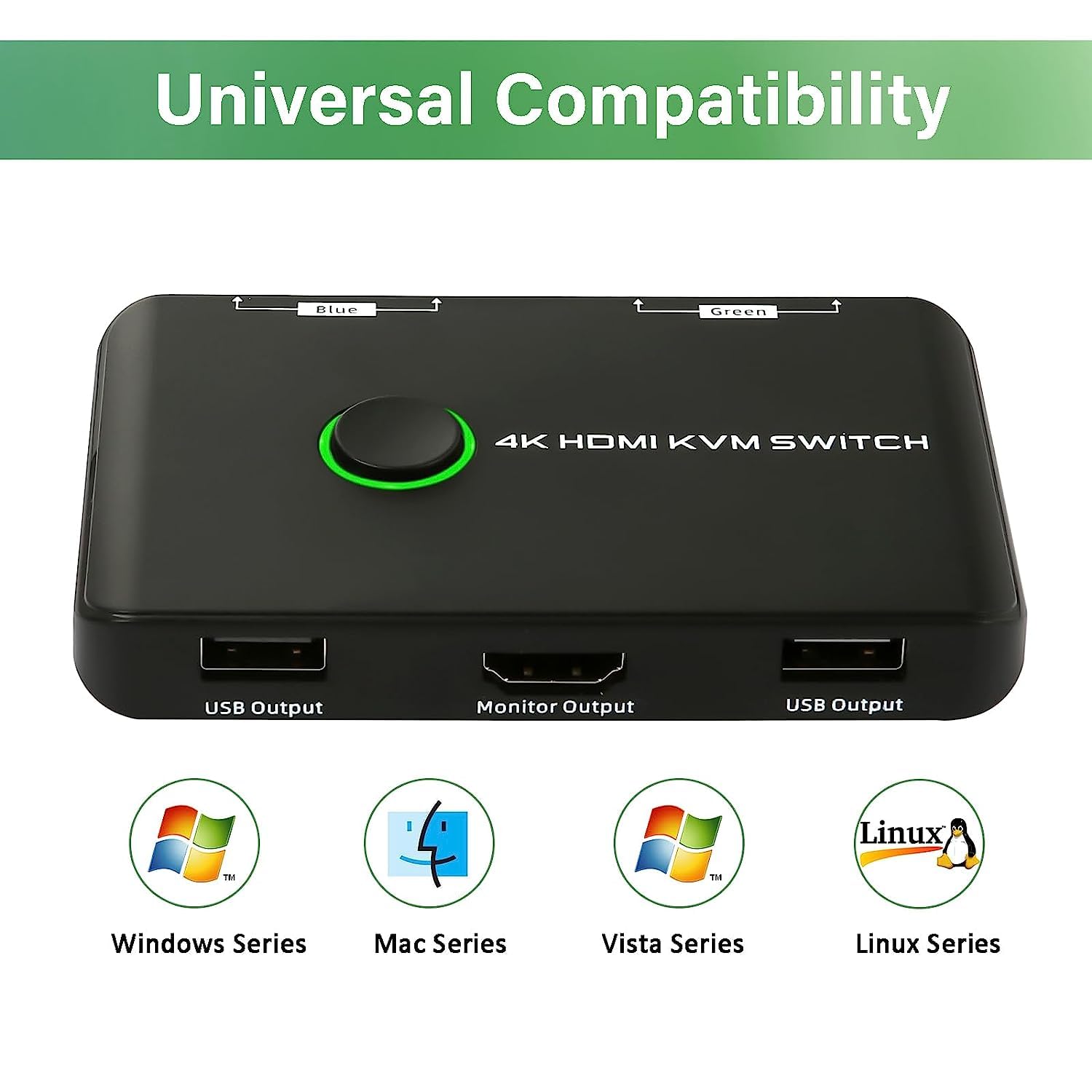 Preklop z enim gumbom: Hitro preklapljanje z LED indikatorjem za jasen pregled nad aktivno napravo.
