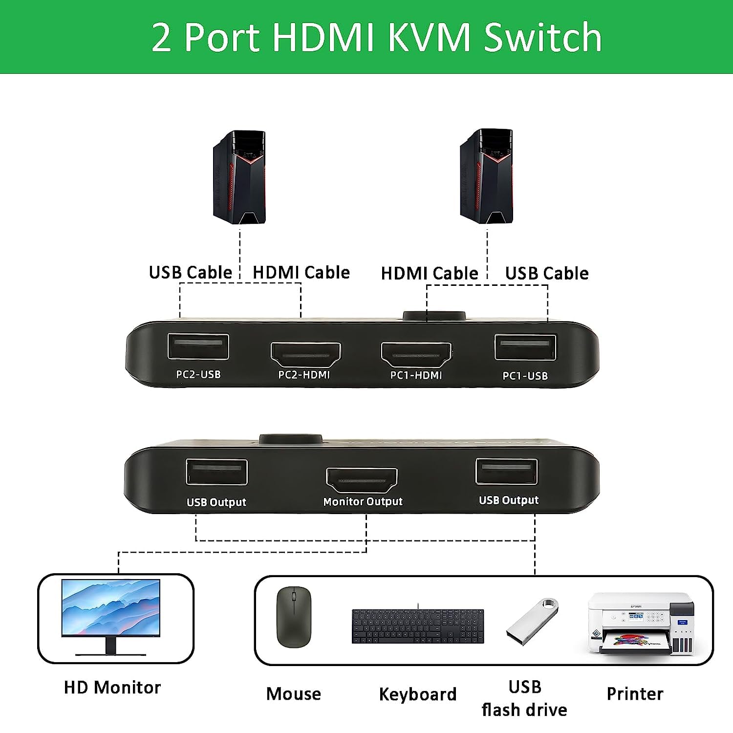 TCNEWCL HDMI KVM Stikalo 2-V-1 Za 2 Računalnika In 1 Monitor (4K 60 Hz)