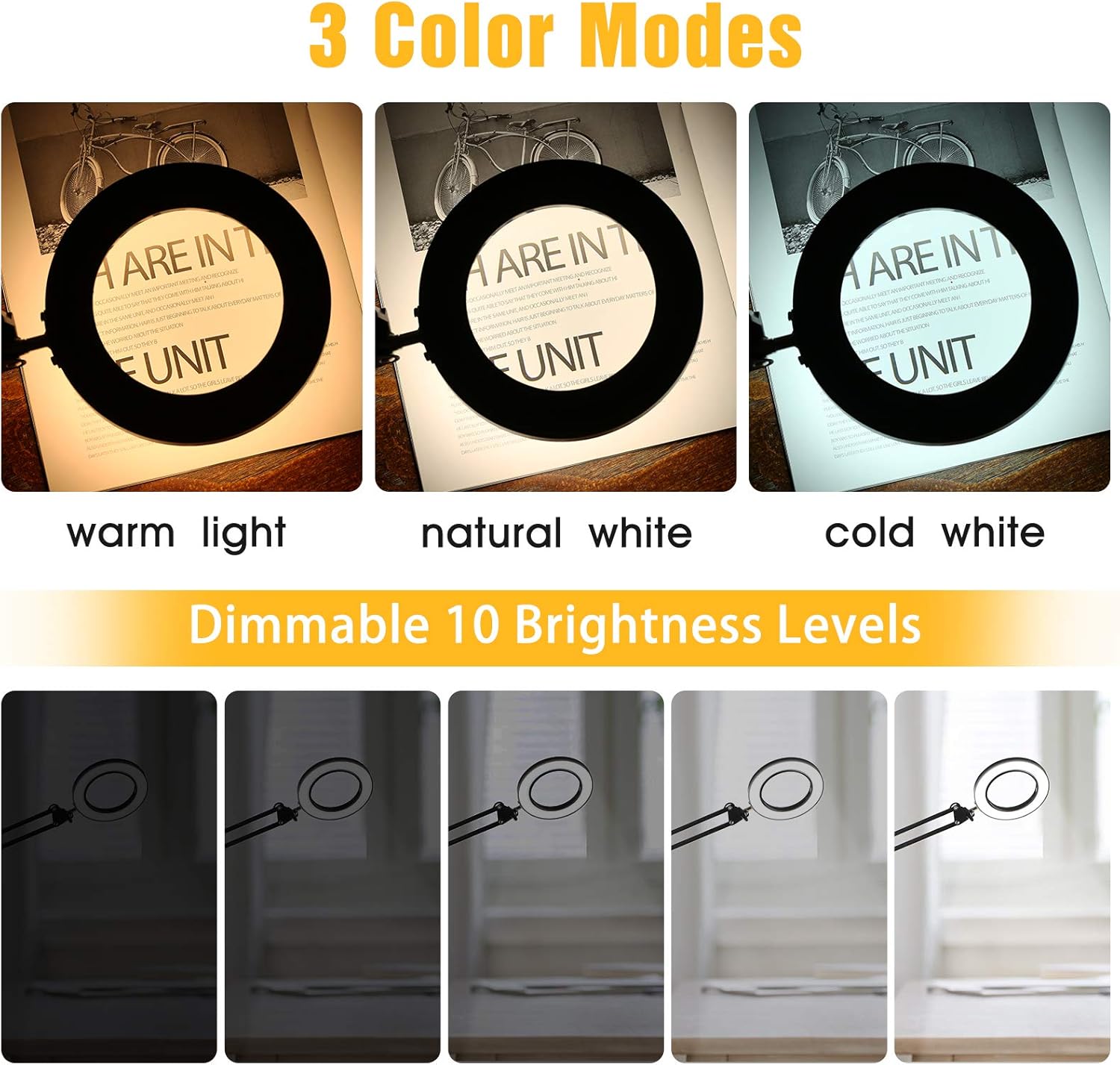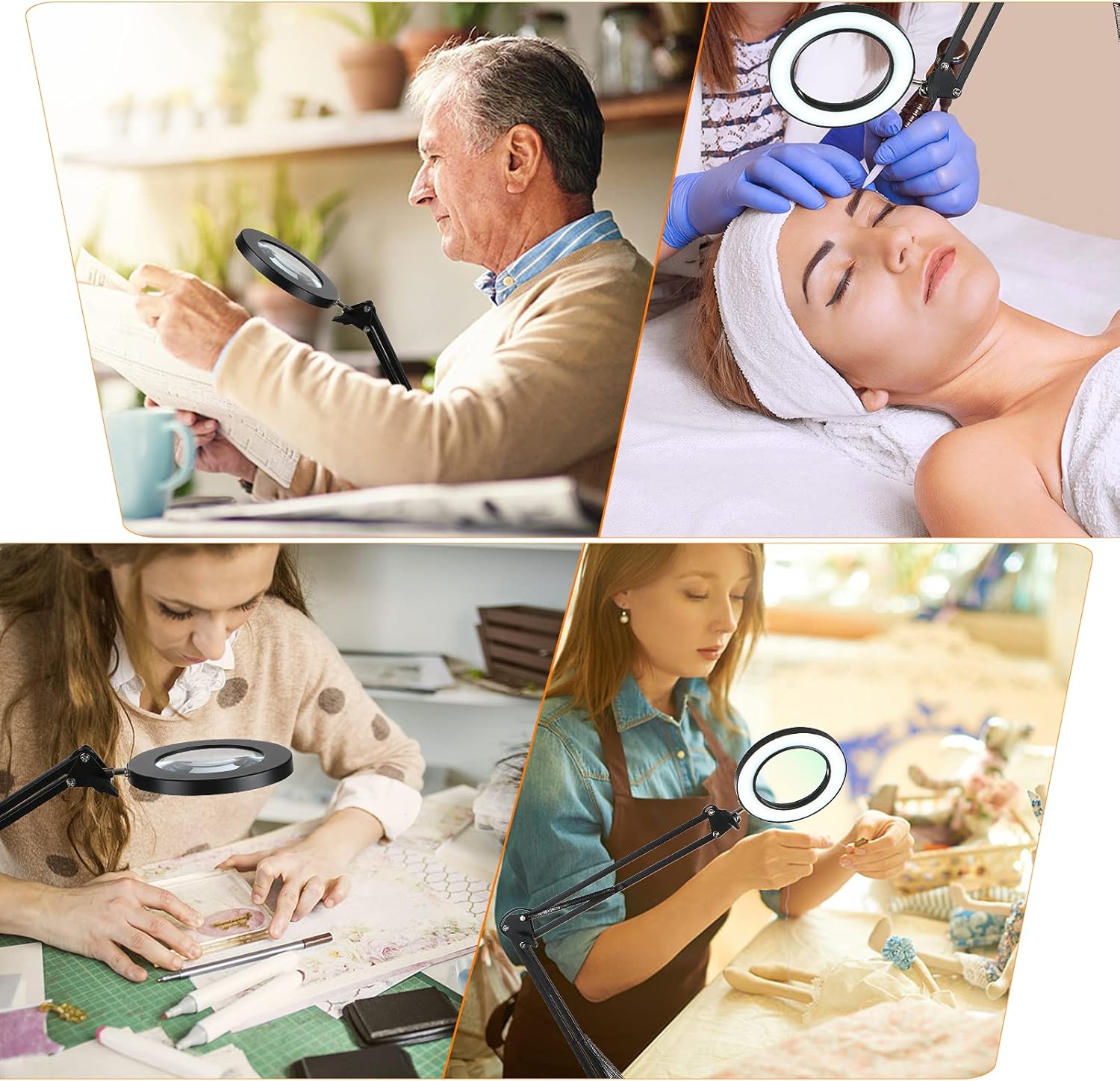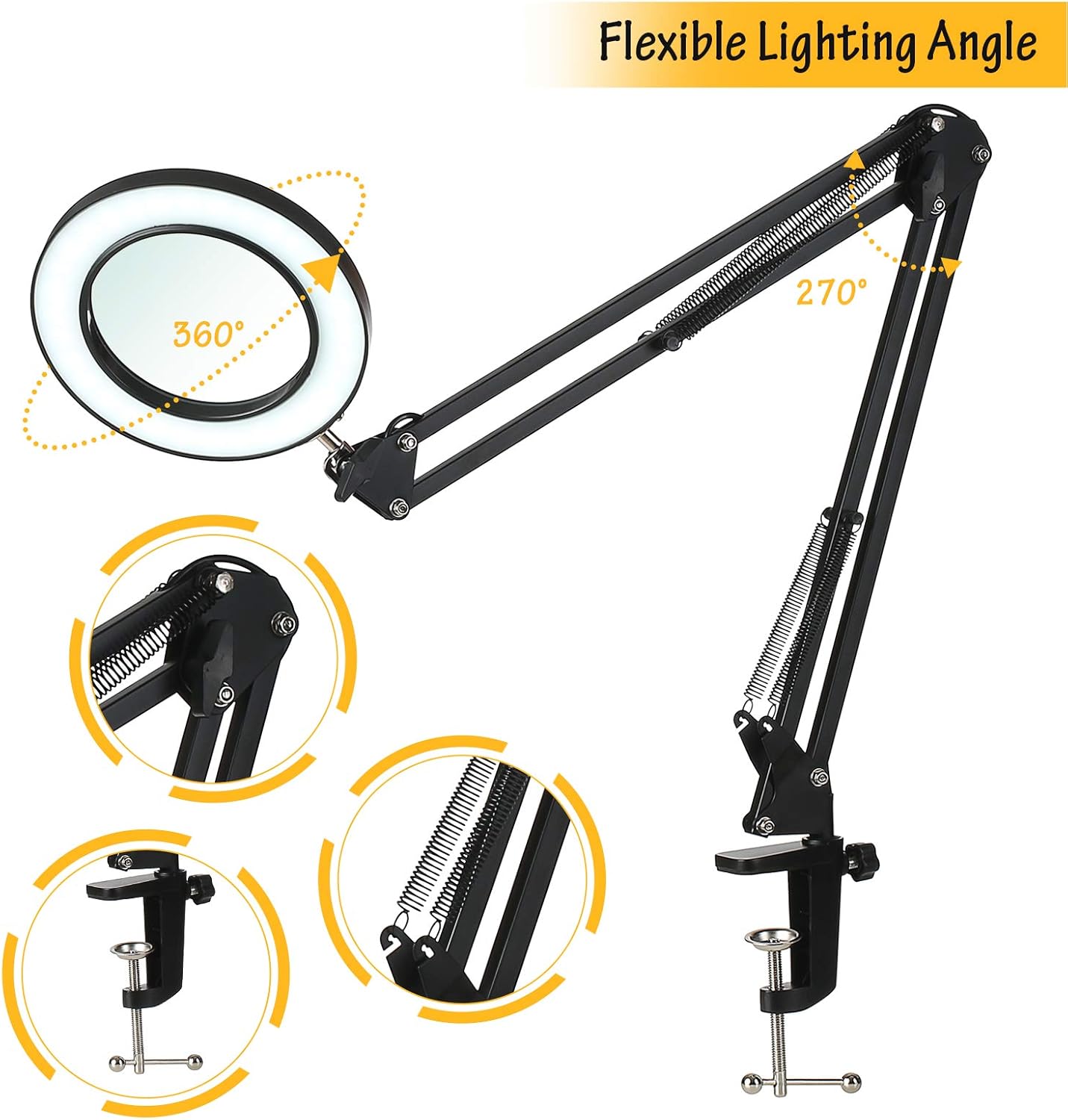 Ta vsestranska povečevalna svetilka združuje natančno 8× povečevalno steklo in močno LED osvetlitev, kar zagotavlja jasen pogled in optimalno svetlobo za natančna opravila. S fleksibilnim vrtljivim stojalom, nastavljivo svetlostjo in različnimi barvnimi načini je idealna izbira za ličenje, branje, graviranje, popravila ali ustvarjanje v delavnici.