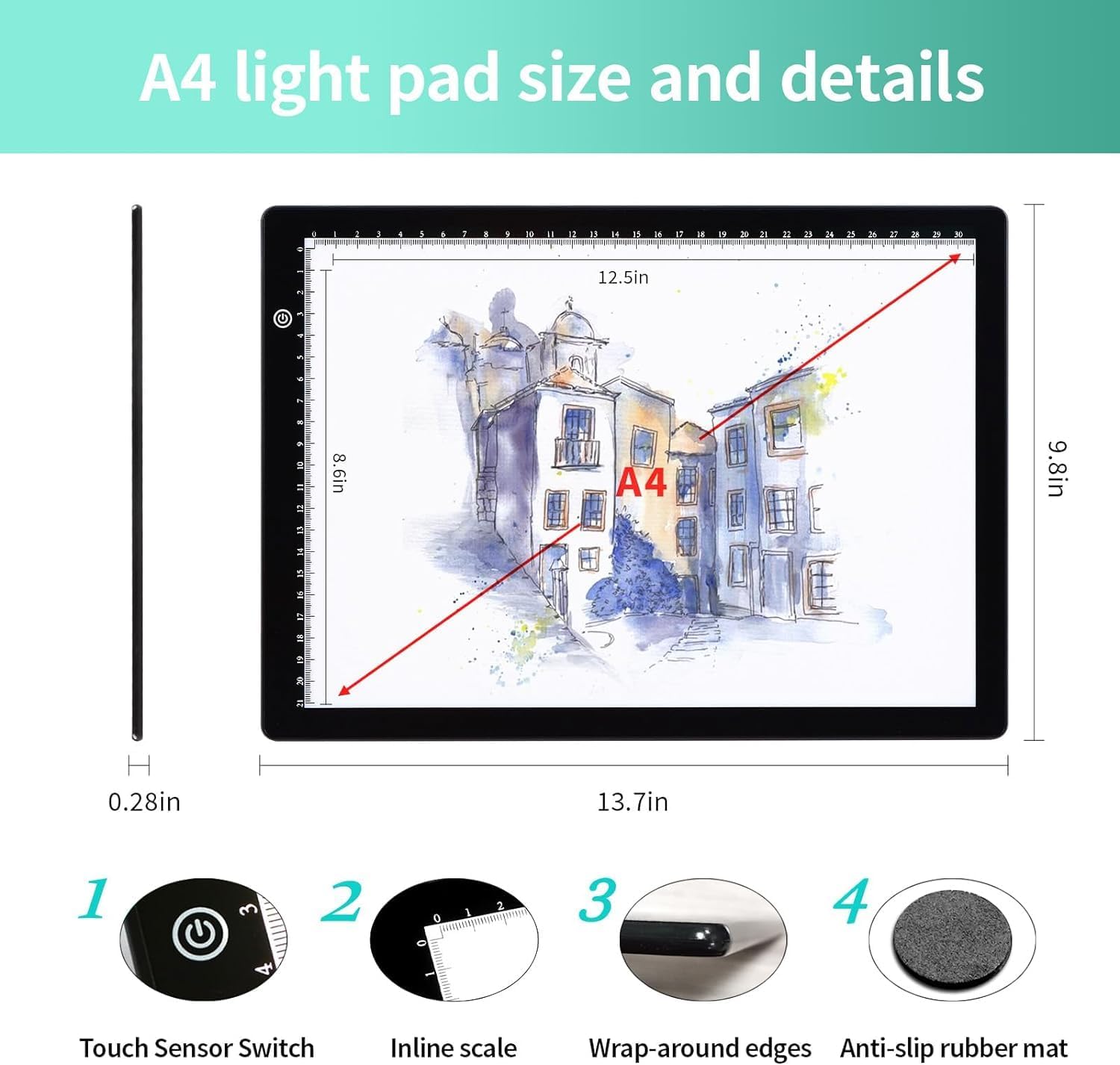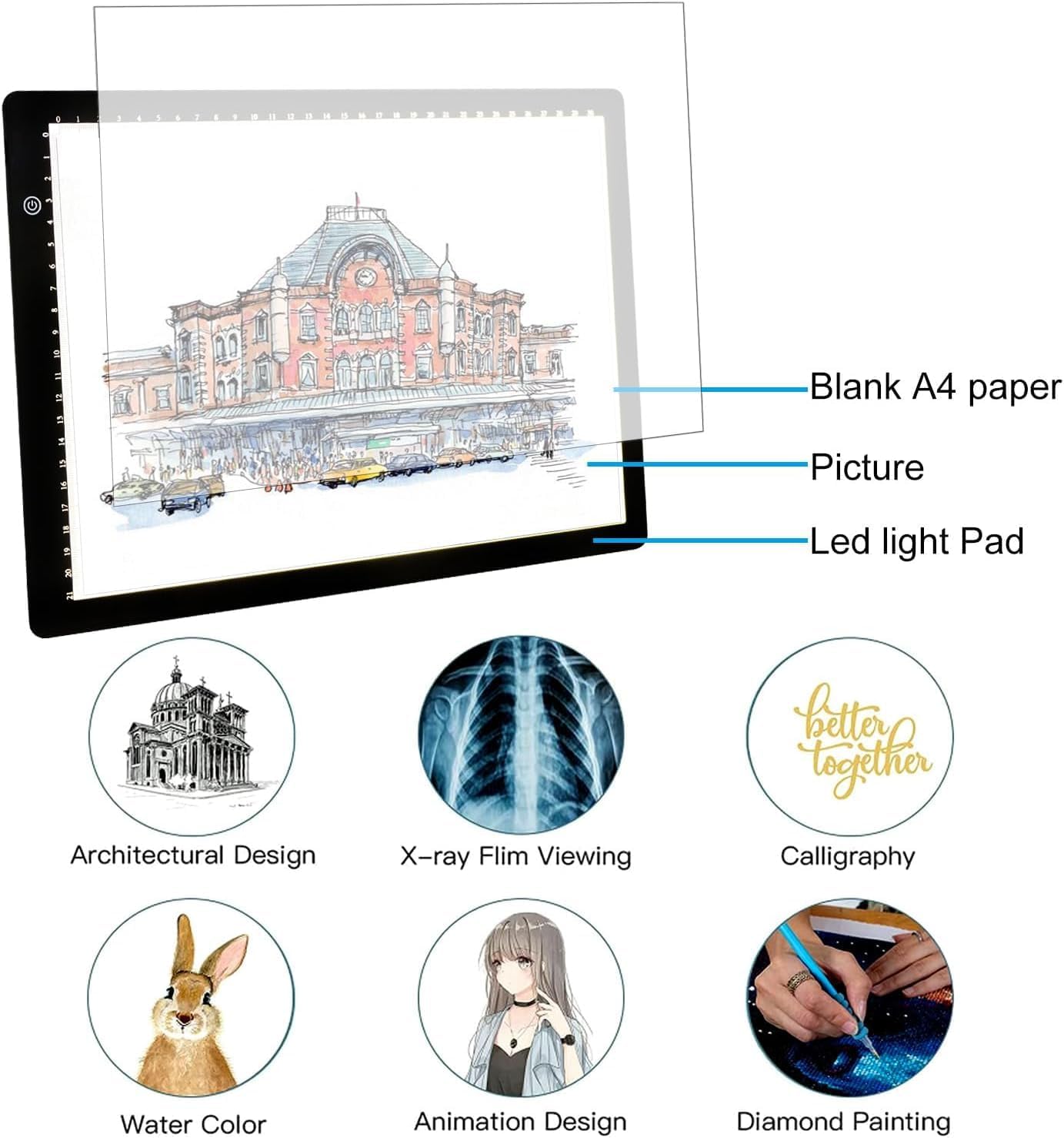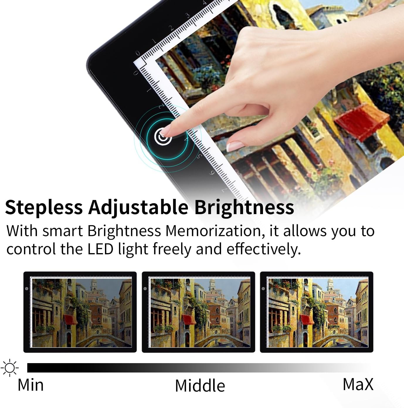 Svetlobna tabla A4 omogoča natančno risanje, kopiranje in ustvarjanje z možnostjo neprekinjenega prilagajanja svetlosti ter pametnim pomnilnikom nastavitev. Zahvaljujoč tankemu dizajnu je idealna za uporabo doma ali na poti.