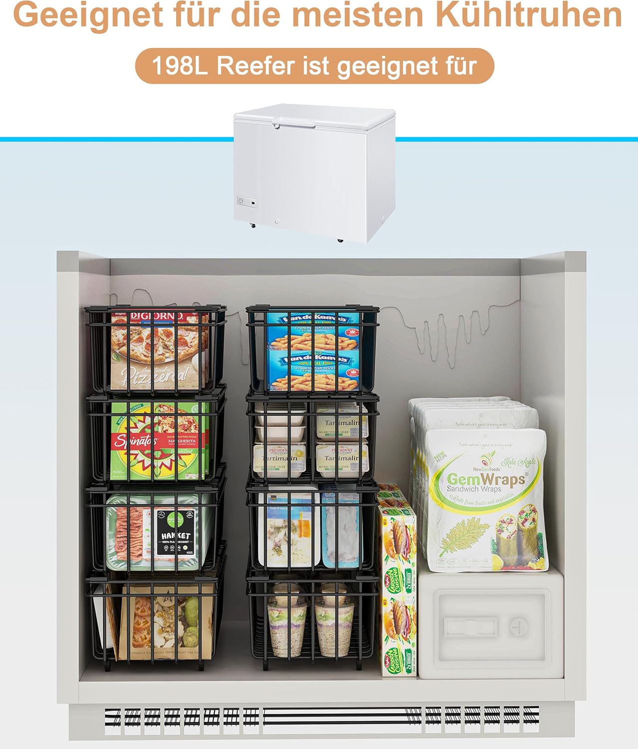 Praktične košare za zamrzovalnik omogočajo urejeno shranjevanje živil, boljši pregled nad zalogo in hitrejši dostop do vsebine. Idealne so za 198-litrske skrinje in hladilnike, živila razvrstijo po datumu uporabe ter preprečijo pozabljena ali pretečena zamrznjena živila.