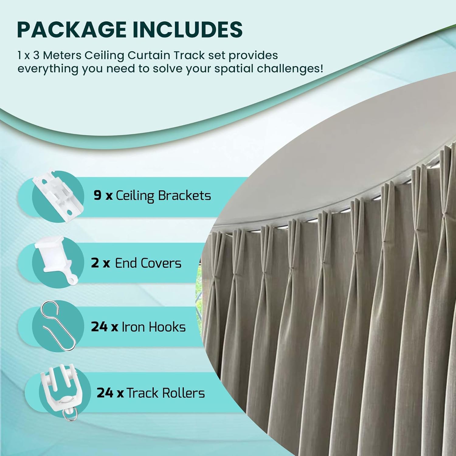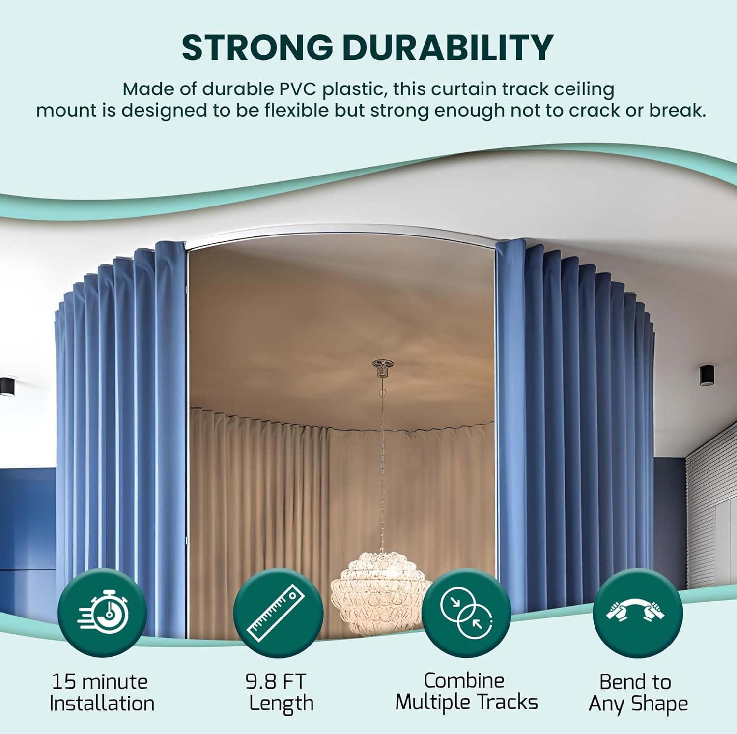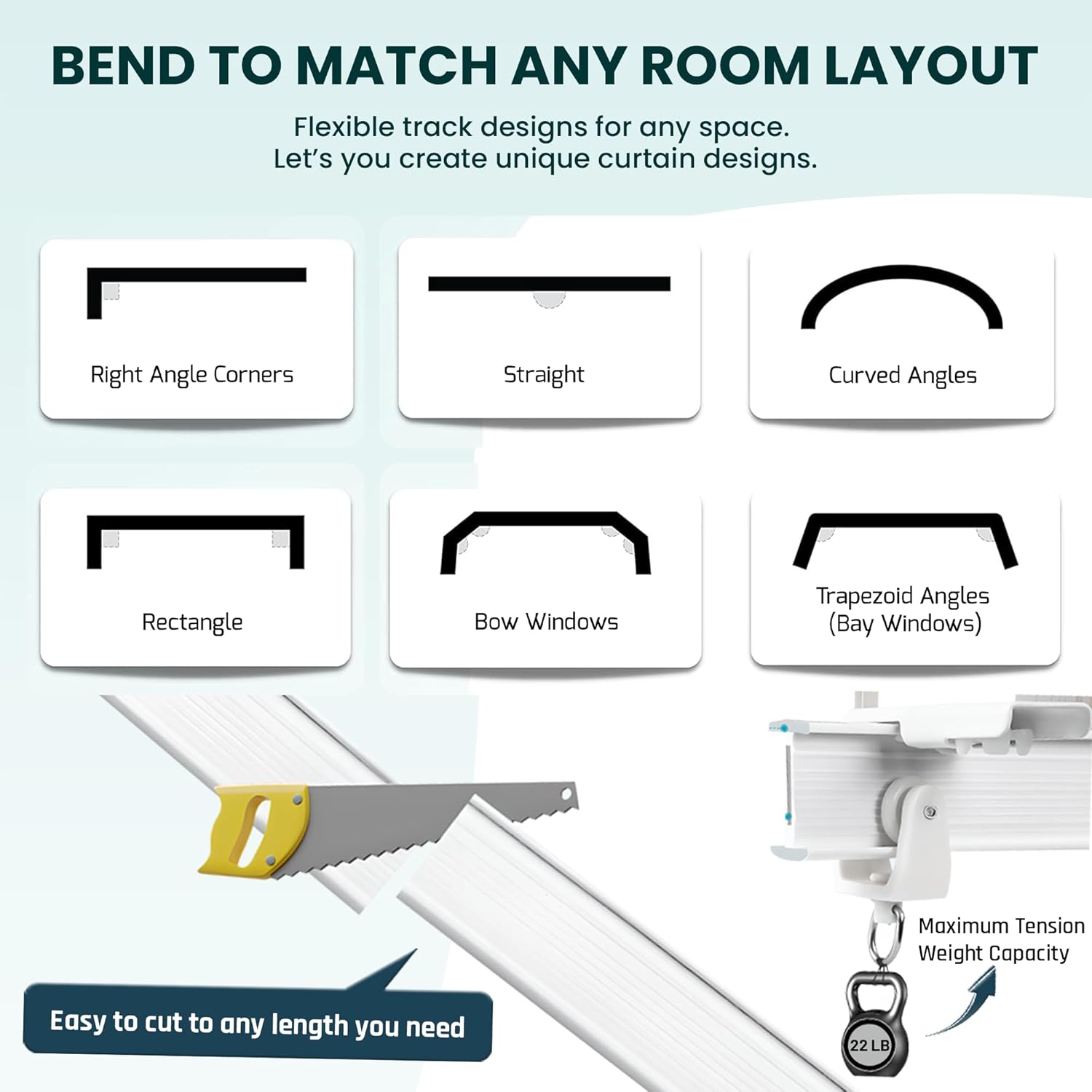 Stropna zavesna tirnica omogoča popolno prilagodljivost pri razporejanju zaves, pregrad in tkanin v vsakem prostoru. Izdelana iz kakovostnega, UV-odpornega vinila, se lahko upogiba do 180° brez lomljenja in jo je mogoče oblikovati v katerokoli smer – idealna za zavese na stropu, sobne pregrade ali vozila (npr. avtodome). Komplet vsebuje vse, kar potrebujete za hitro montažo.