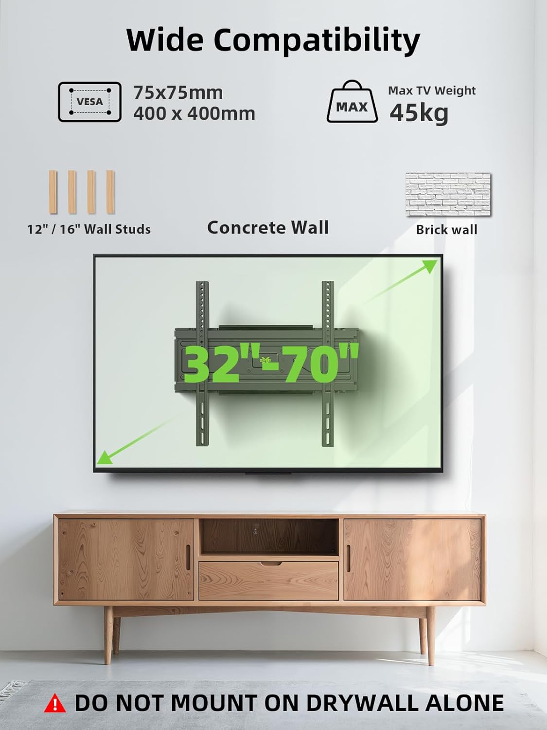 Univerzalna združljivost: Podpira širok razpon VESA standardov in se prilega večini televizorjev znamk Samsung, LG, Sony, Philips, Panasonic, TCL, Hisense in drugih.