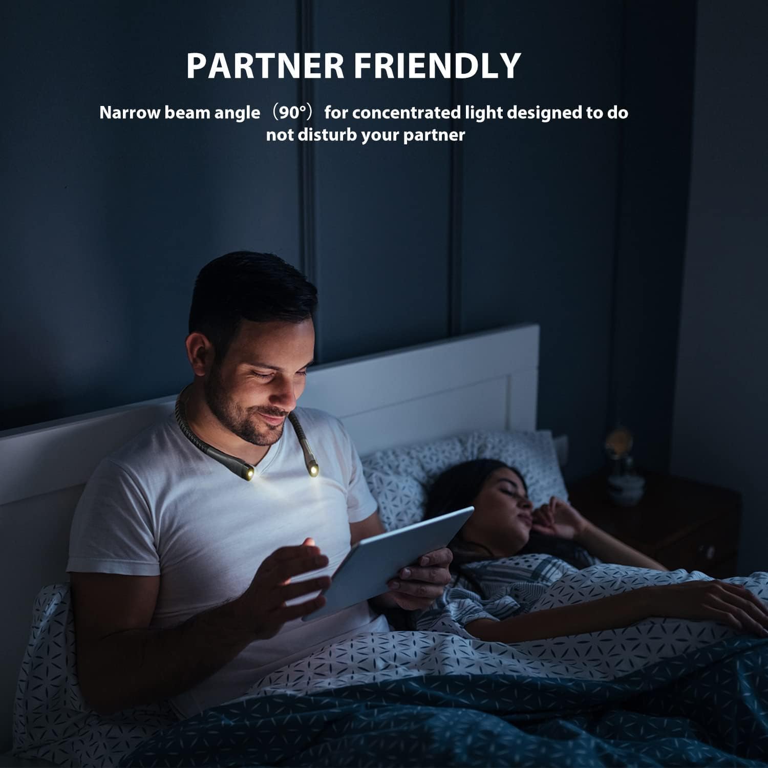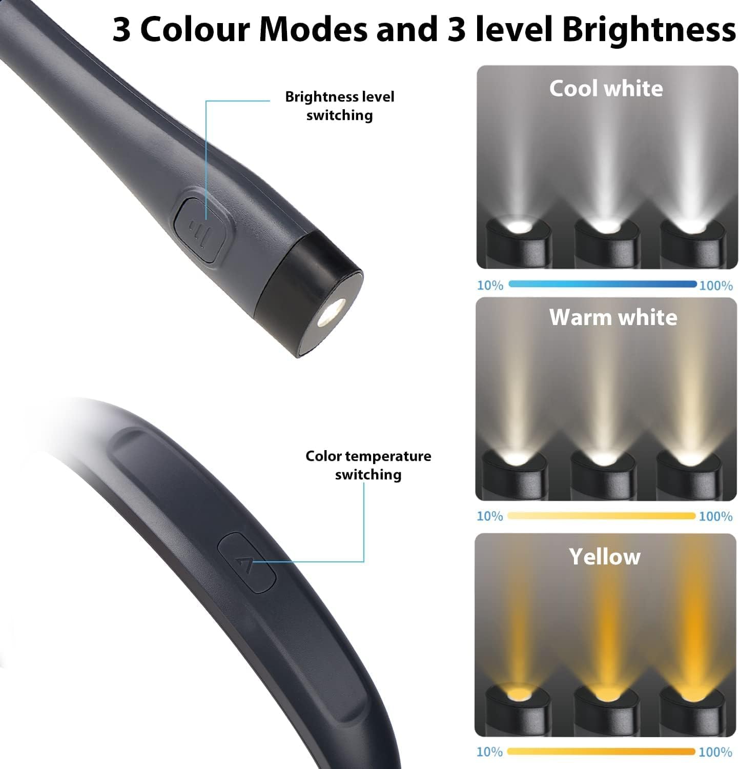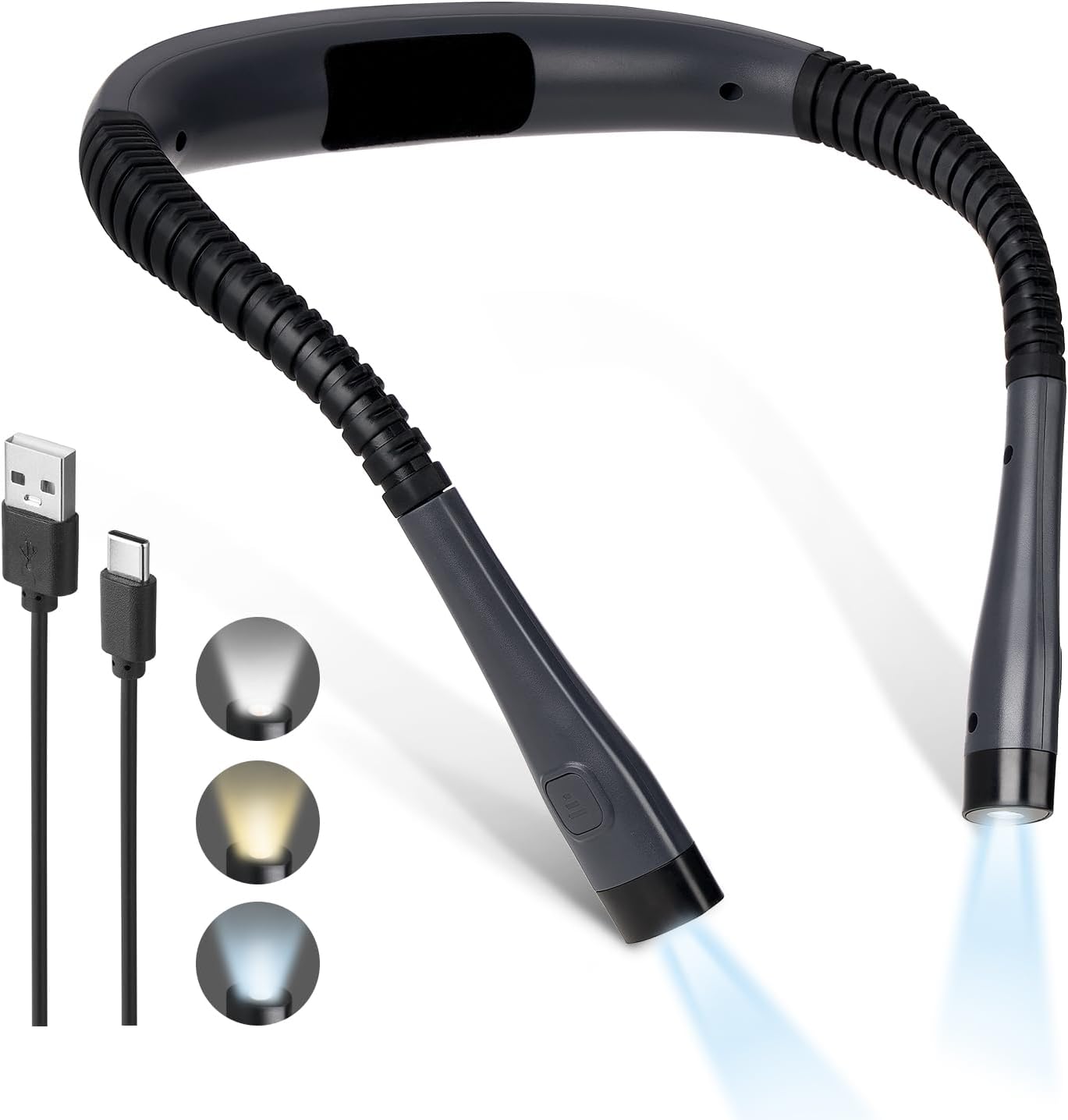 Praktična vratna svetilka omogoča branje, pletenje, šivanje ali kampiranje brez uporabe rok. Z upogljivima rokama, tremi barvnimi temperaturami in tremi stopnjami svetlosti zagotavlja udobno in prilagodljivo osvetlitev, ne da bi motila druge v prostoru.