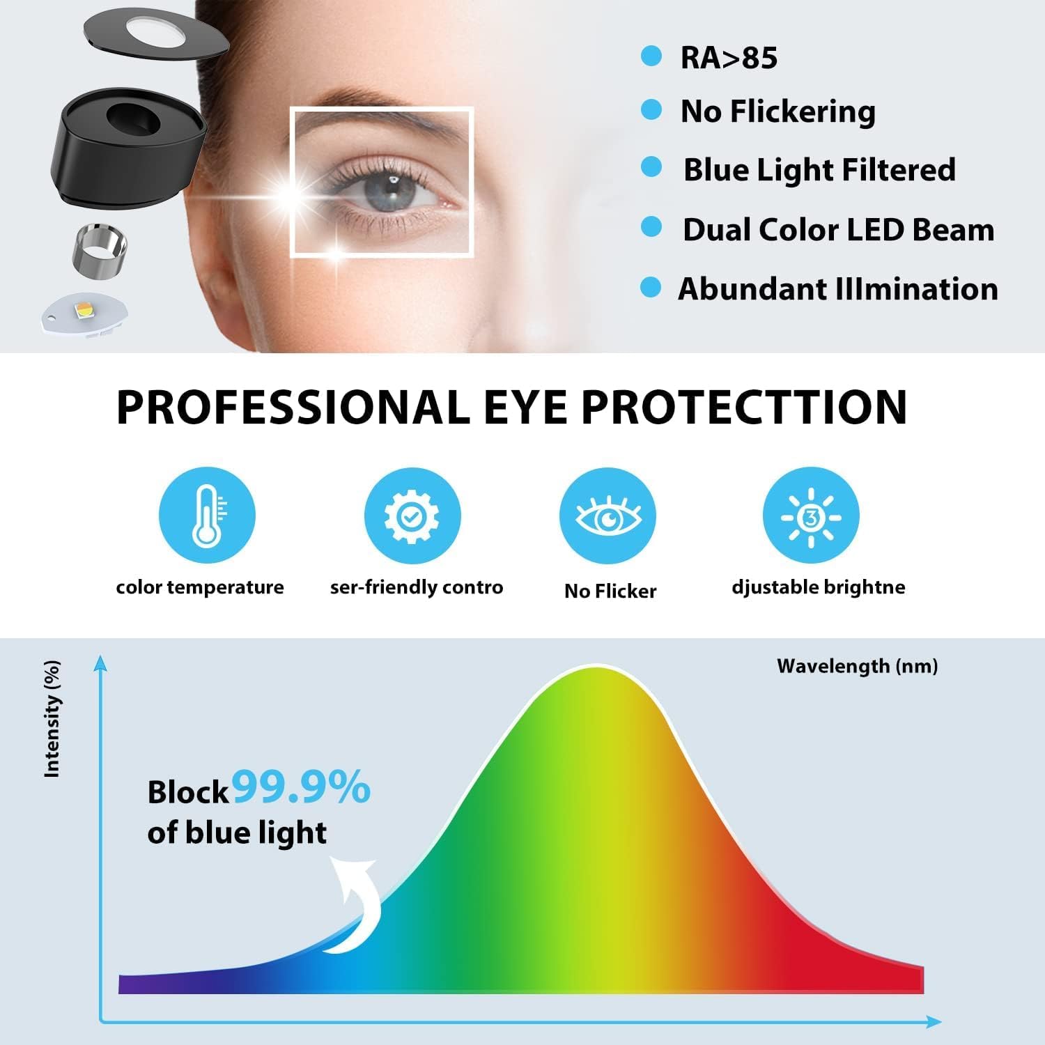 Varna za oči: brez utripanja ali bleščanja, primerna za dolgotrajno uporabo;