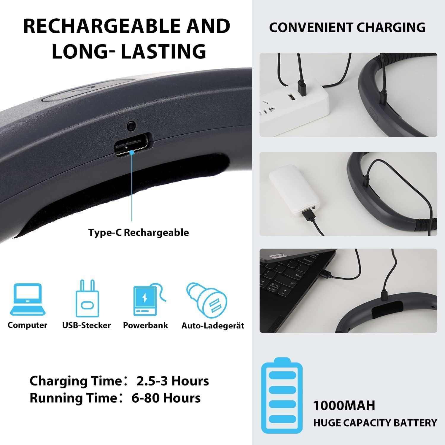 Ergonomska zasnova: udobno nošenje okoli vratu z nastavljivimi, mehko oblazinjenimi rokami;