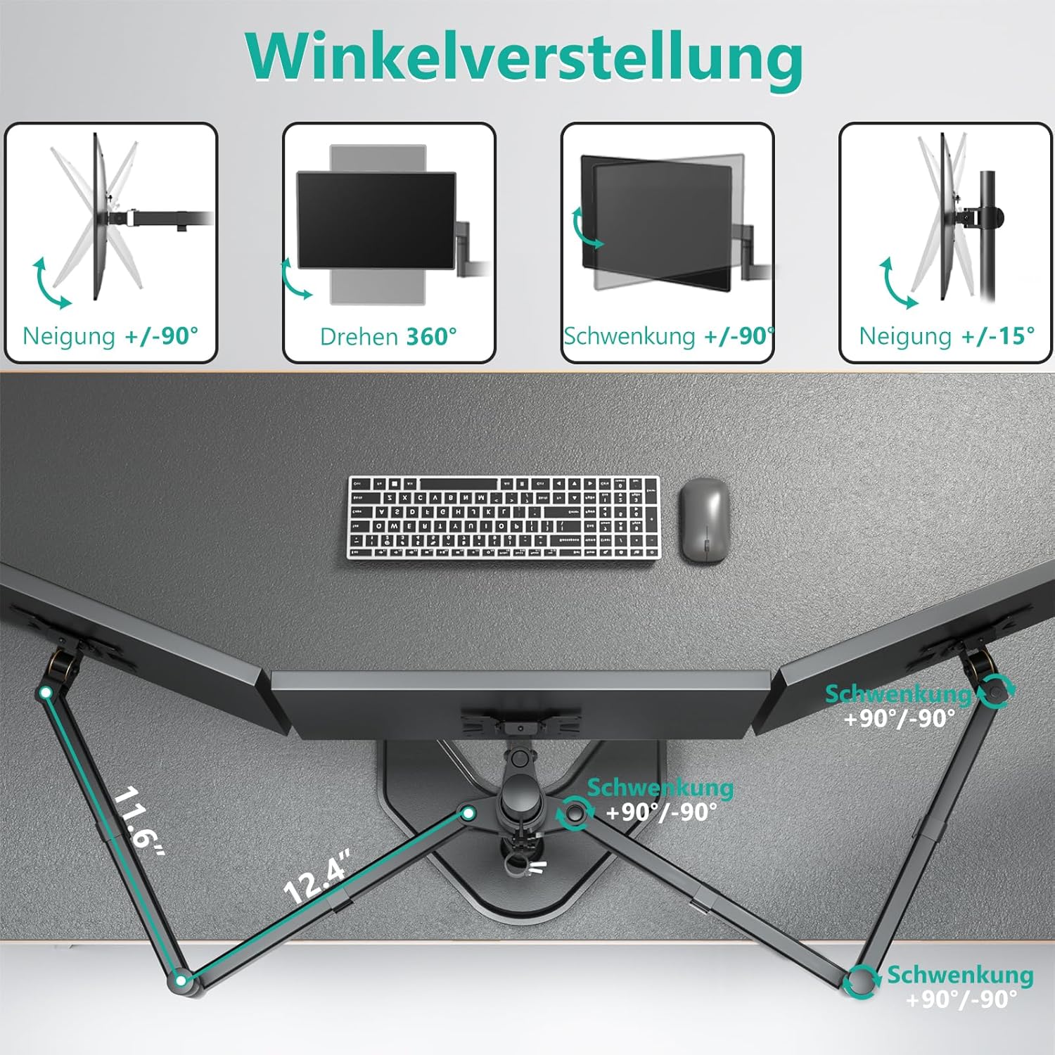 WALI stojalo za tri monitorje je zasnovano za optimalno ergonomsko namestitev in podporo trem zaslonom do 24 palcev. Vsak ročaj prenese do 10 kg teže, omogoča širok razpon gibanja z nastavitvijo višine, nagiba, zasuka in vrtljivosti, kar zagotavlja udobno delo in zmanjšuje obremenitve vratu ter oči. Primeren je za uporabo v domačem ali poslovnem okolju z možnostjo enostavne montaže na pisalno mizo.