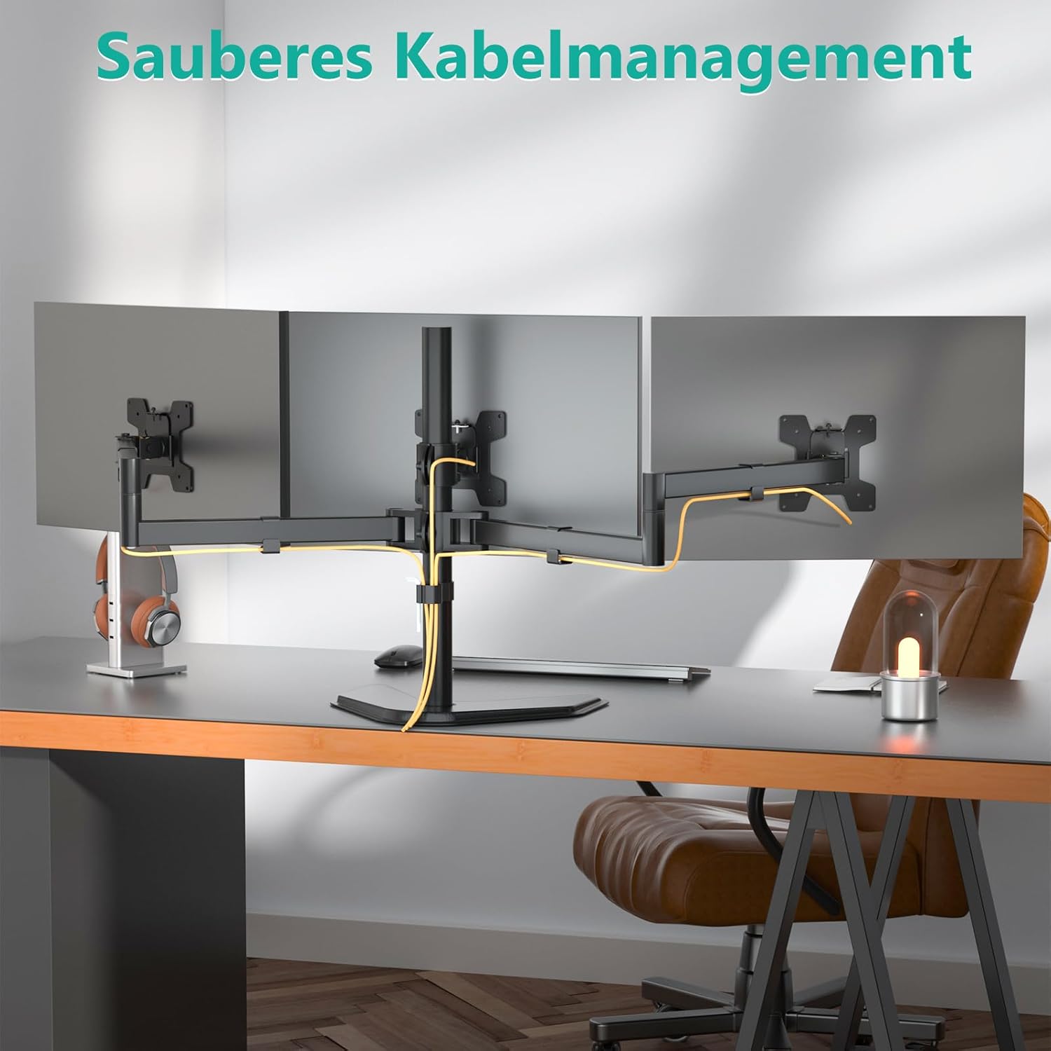 WALI stojalo za tri monitorje združuje funkcionalnost in vzdržljivost, kar omogoča učinkovito in ergonomsko urejeno delovno okolje. Primeren je za vsakogar, ki želi povečati produktivnost in udobje pri delu z več zasloni.