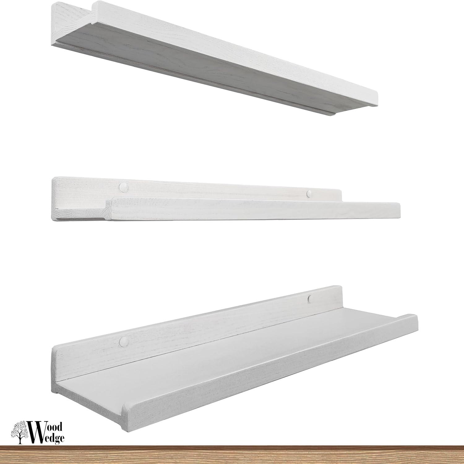 Elegantne izdelane stenske police iz masivnega jesena prinašajo sodoben videz, izjemno stabilnost in praktično shranjevanje za kopalnico, dnevno sobo, kuhinjo ali spalnico. Vsaka polica je unikatno ročno izdelana, opremljena s sprednjim zaščitnim robom in nosilnostjo do 10 kg na posamezno polico.