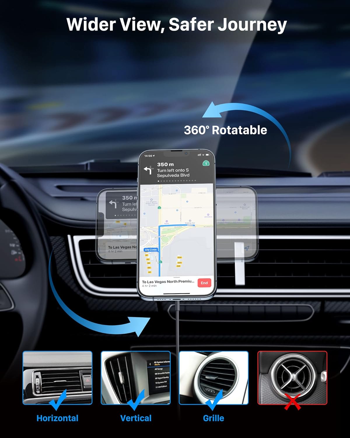 Močna magnetna pritrditev: 16 × N52 magnetov za hitro (0,1 s) in varno namestitev brez padanja telefona.