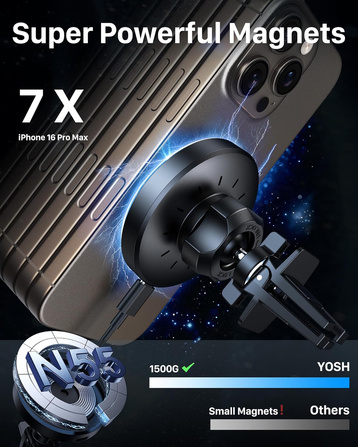 YOSH Mag-Safe Magnetni nosilec in brezžični avtopolnilec za iPhone 12–16