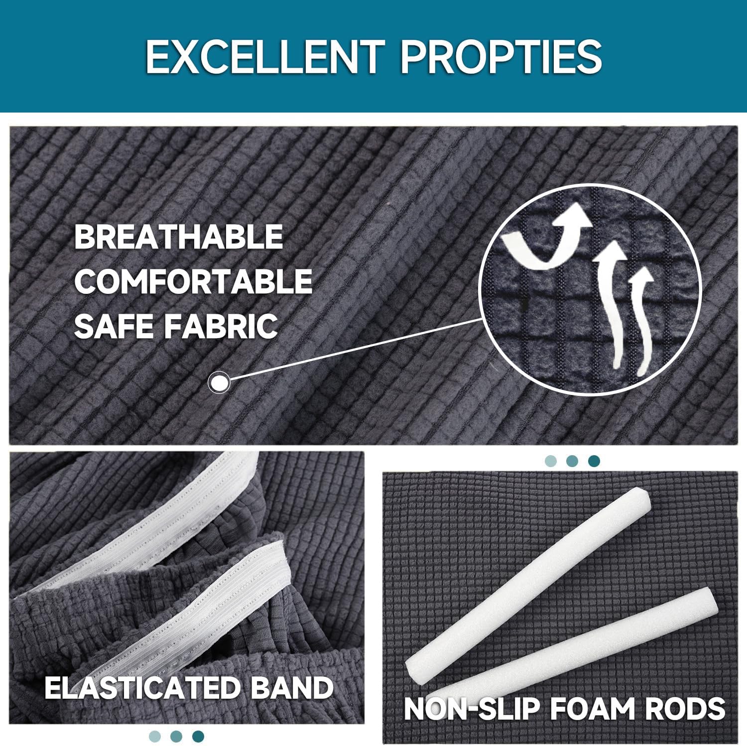 Visokokakovostna tkanina: Mehka, elastična in trpežna mešanica poliestra in spandeksa se popolnoma prilega različnim vrstam kavčev.